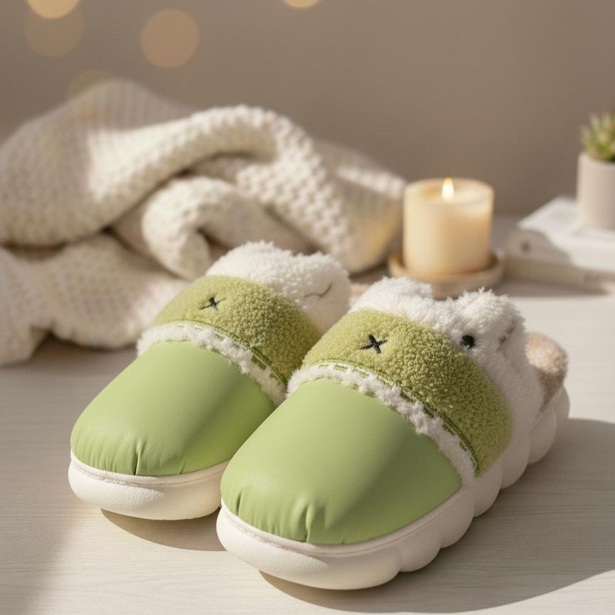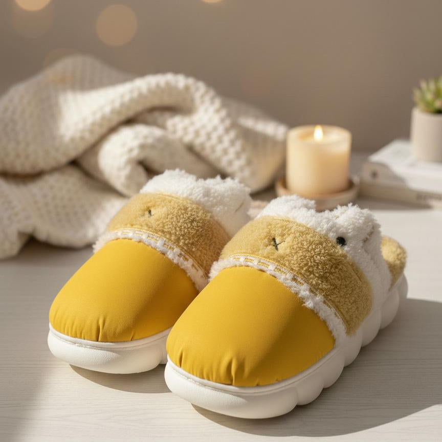 خف للأولاد، مثالي للحفاظ على دفء وجفاف أقدامهم في المنزل. يتميز ببطانة داخلية من الفرو الأبيض الدافئ وغطاء أمامي مقاوم للماء (وتر بروف)