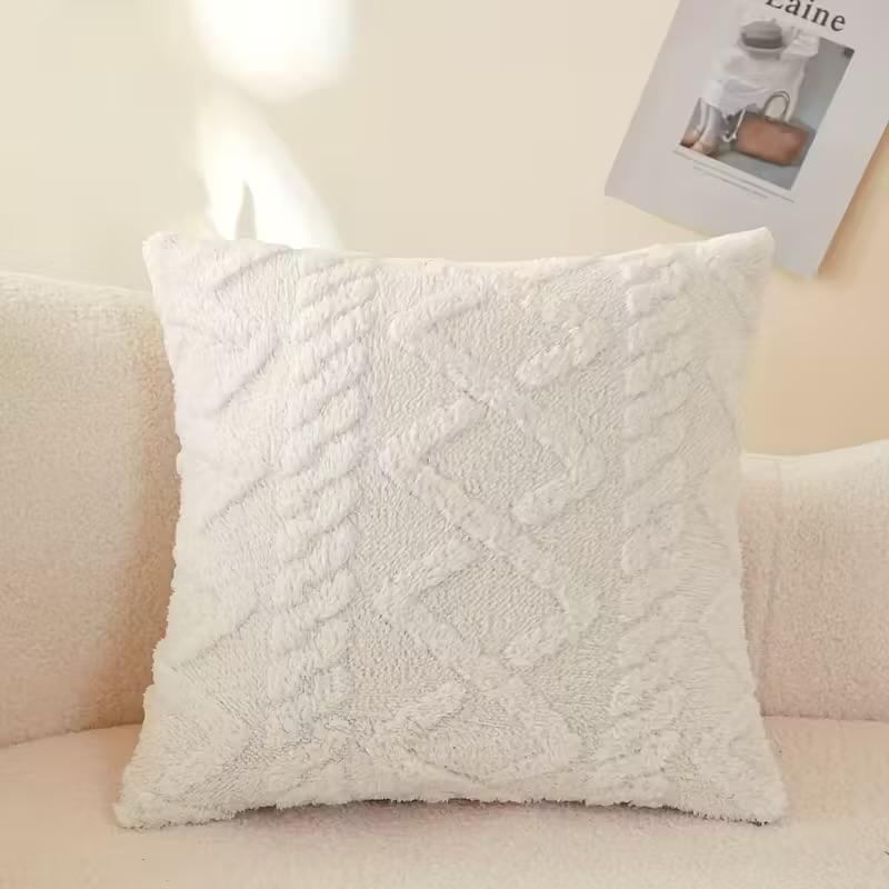 مخدة ديكور خامتها فروية وبتعطي شعور بالراحة والدفا. عليها نقشة بارزة مميزة على شكل خطوط متعرجة. بتستخدم لتزيين الكنباية، وبتضيف لمسة رقيقة وعصرية لديكور البيت.