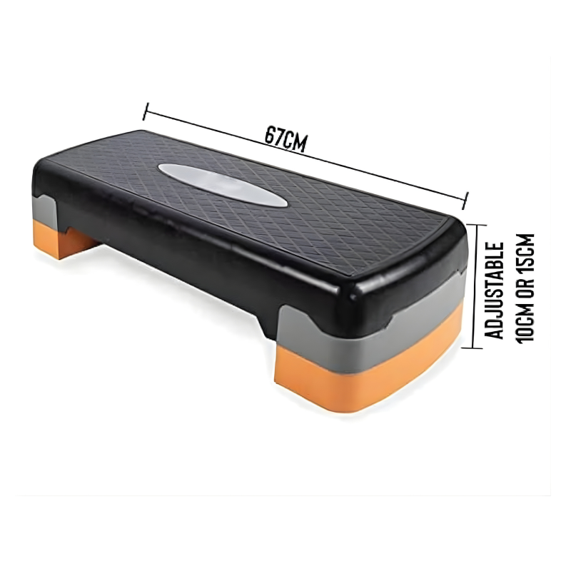 فيك تعدّلي ارتفاعها حسب راحتك (10 سم أو 15 سم)، وسطحها ضد الانزلاق عشان تضمني أمانك وقت التمرين.