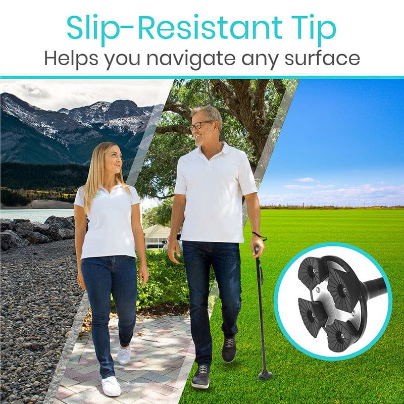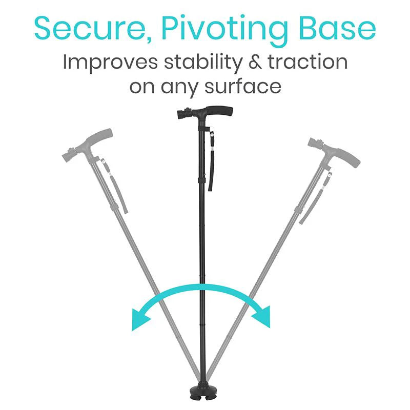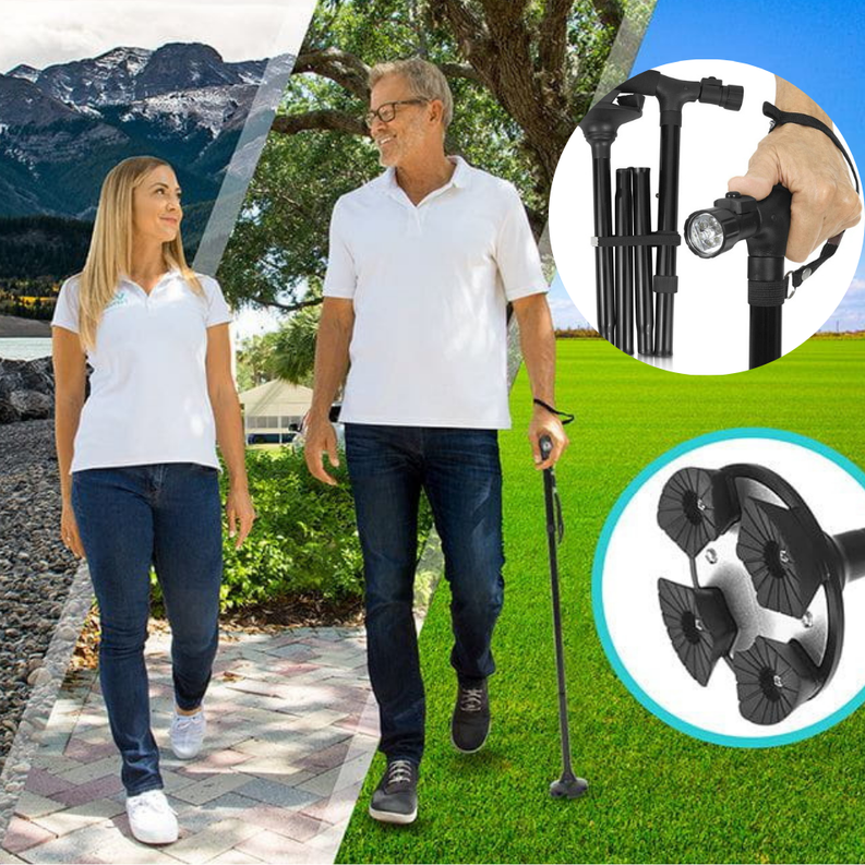 عصا (عكاز) ضد الانزلاق وقابلة للطي مع إضاءة ليد