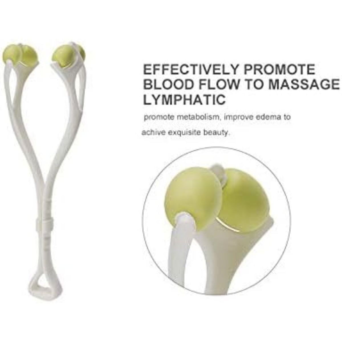 أداة مساج يدوية صغيرة، مصممة خصيصاً لمساج الوجه والرقبة. فيها كرتين صغيرات وناعمتين بيلفوا، بتستخدميهم عشان تعملي تدليك خفيف للخدود، الفك، ومنطقة الرقبة. بتساعد على تنشيط الدورة الدموية، وتخفف التوتر، وممكن تعطي شعور بالاسترخاء وتساعد على شد البشرة."