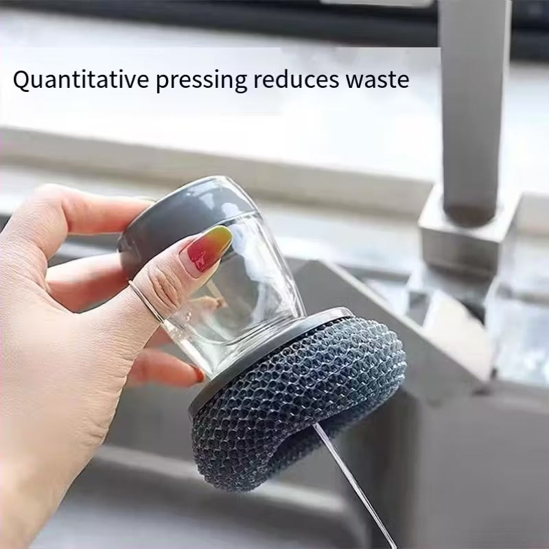 سلكة جلي بتصميم جديد ومريح. مش بس سلكة عادية، هاي بتيجي مع خزان مدمج بتقدر تعبيه بسائل الجلي، وكل ما احتجت، بتضغط على الكبسة اللي فوق فبينزل الصابون مباشرة على السلكة. هذا الإشي بخلي الجلي أسهل وأسرع، وبقلل من هدر الصابون لأنك بتستخدم الكمية اللي بتحتاجها بالضبط. ممتازة لتنظيف الصحون والطناجر من الدهون وبقايا الأكل بسرعة وفعالية."