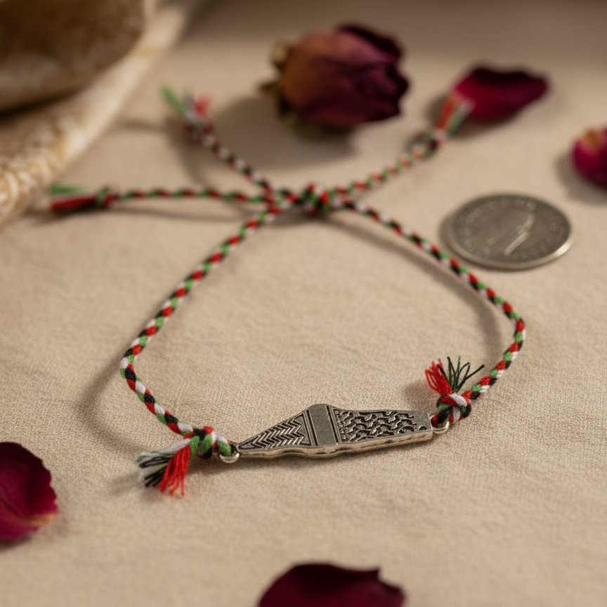 إسوارة تراثية بخيط العلم وخريطة فلسطين