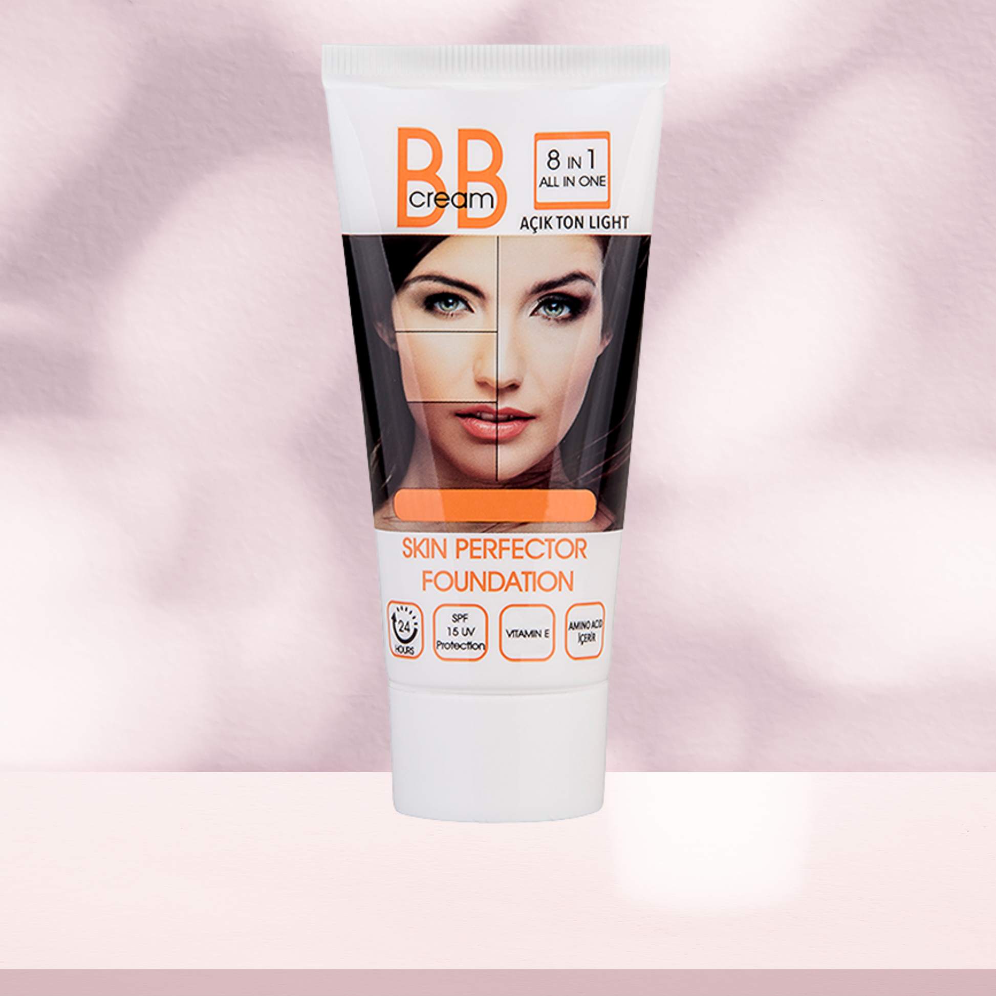 كريم بي بي متعدد الوظائف، مصمم ليعمل كـ 8 في 1، ويجمع بين خصائص العناية بالبشرة والمكياج. (كريم أساس مثالي للبشرة).