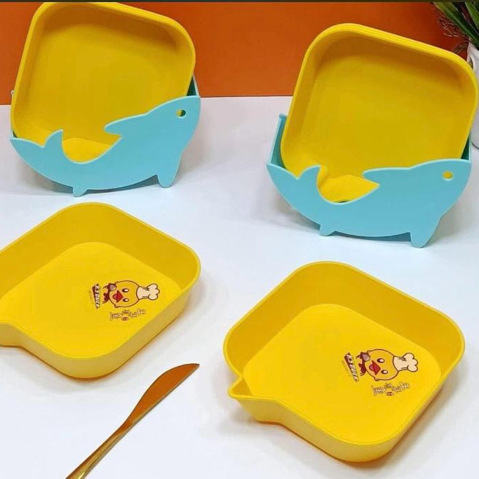 عبارة عن طقم أطباق (Plates/Bowls) بلاستيكية مصممة خصيصاً لوجبات الأطفال، ويتميز بألوان زاهية وتصميم مرح لجعل وقت الطعام ممتعاً.