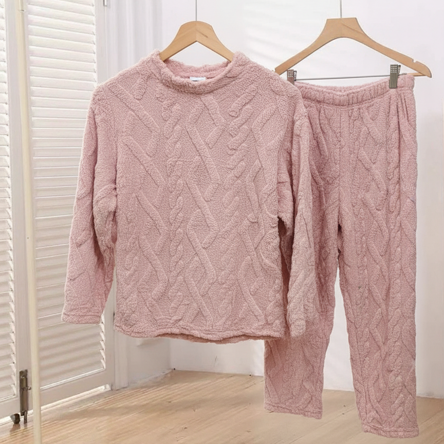 بيجاما شتوية ناعمة بتدفّي من أول لبسة ☁️💗، خامتها فرو خفيف ومريح على الجسم، وبتحافظ على الدفا بأيام البرد.