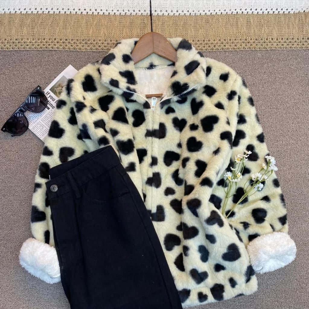 الخامة: مصنوع من الفرو (Fleece) السميك والناعم (يُعرف بـ "Teddy Fabric" في بعض الأحيان)، وهو مثالي للحفاظ على الدفء في الأجواء الباردة.