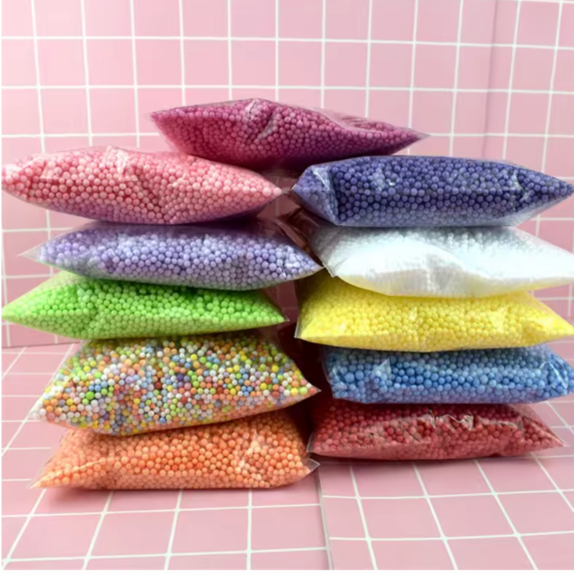 خرز الفوم المايكرو خفيف وسهل الاستخدام، وبيُستعمل كثير بالأشغال اليدوية (DIY)، تزيين وتغليف الهدايا، وأعمال الديكور لأنه بيعطي شكل ملوّن وملمس مميّز، وما بثقّل القطعة.