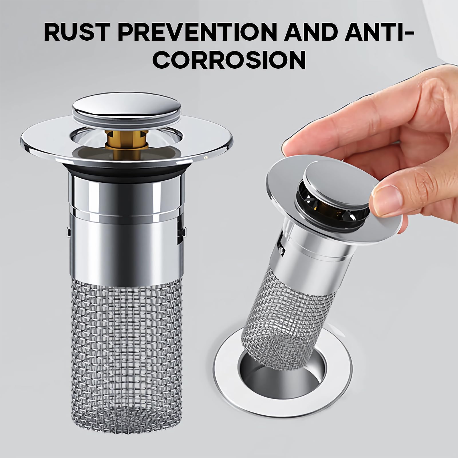 هاي السدّادة الذكية بتيجي مع فلتر ستانلس ستيل قابل للإزالة، بيلمّ الشعر والأوساخ قبل ما ينزلوا على المواسير، وبتحافظ على المغسلة نظيفة بدون تعب.