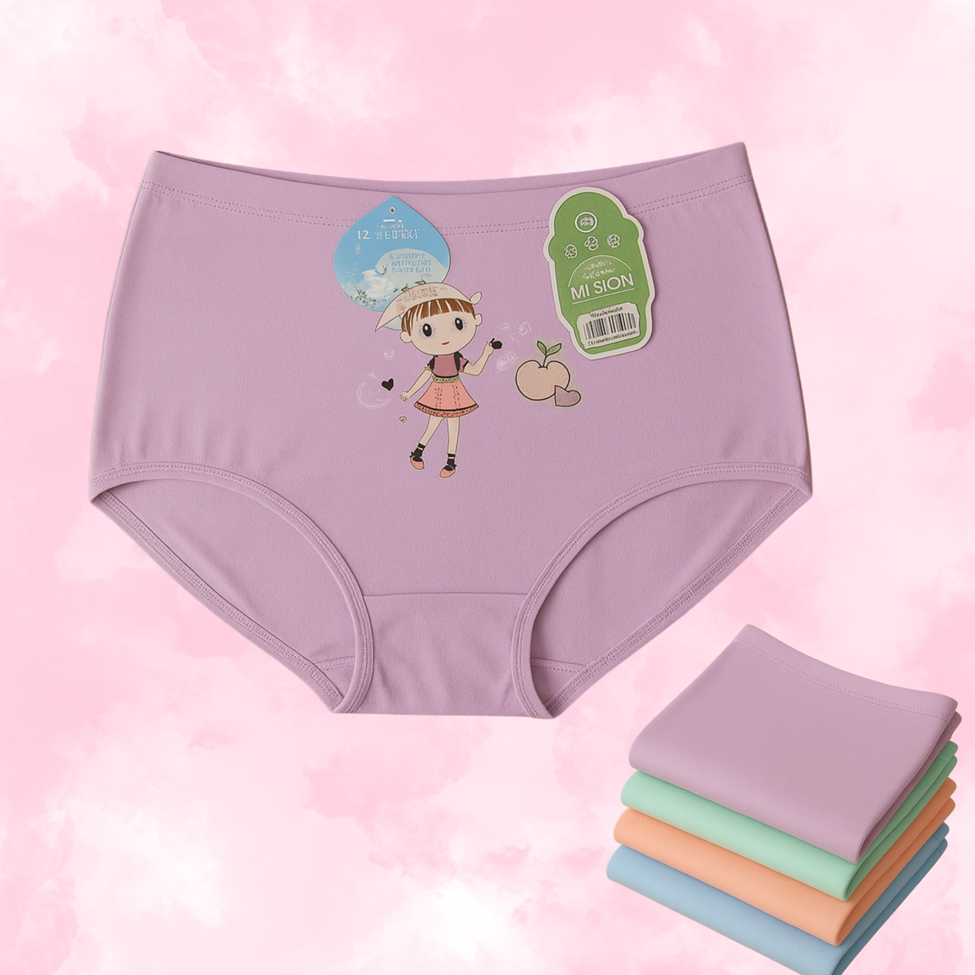 سليب قطن ناعم ومريّح، خصره عالي وبنقشة بناتية لطيفة بتخليه عملي وحلو بنفس الوقت 🌸💖.