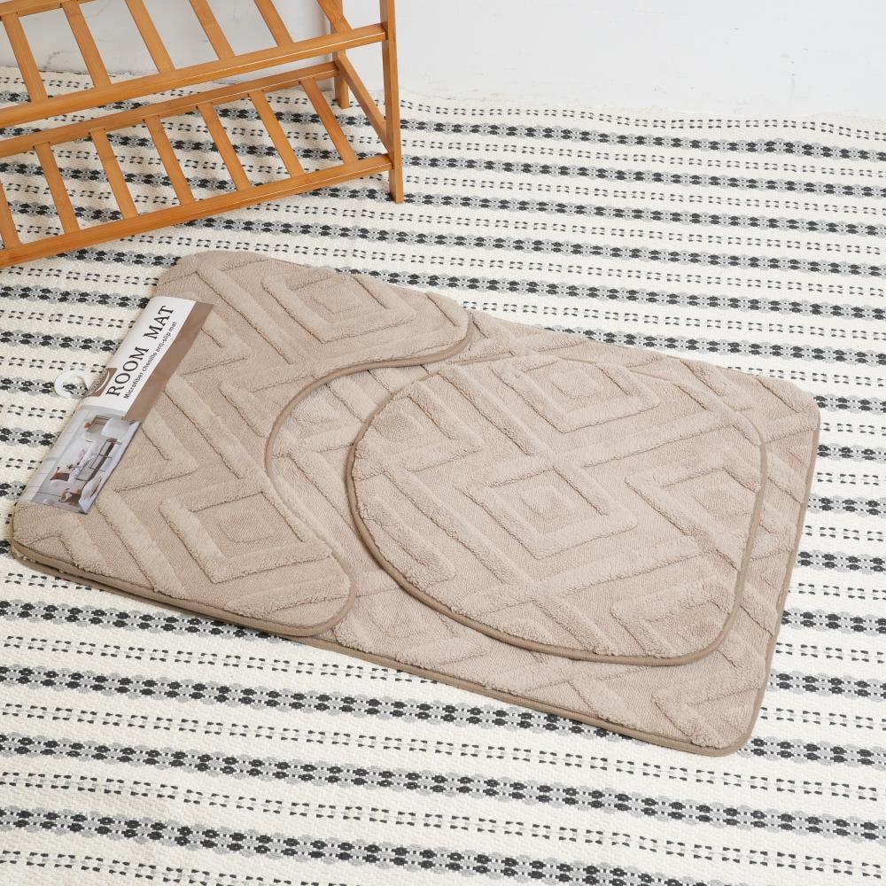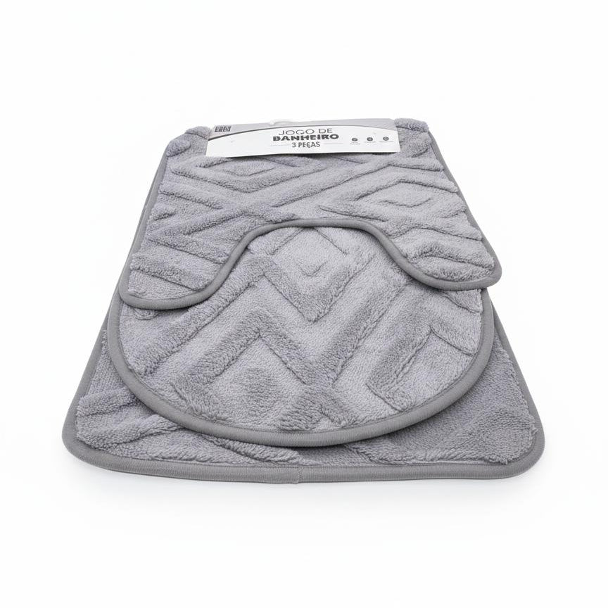 طقم دواسات مخصص للاستخدام في الحمام وله نقشة هندسية بارزة (ثلاثية الأبعاد)، مما يعطيه ملمساً ناعماً وشكلاً أنيقاً.