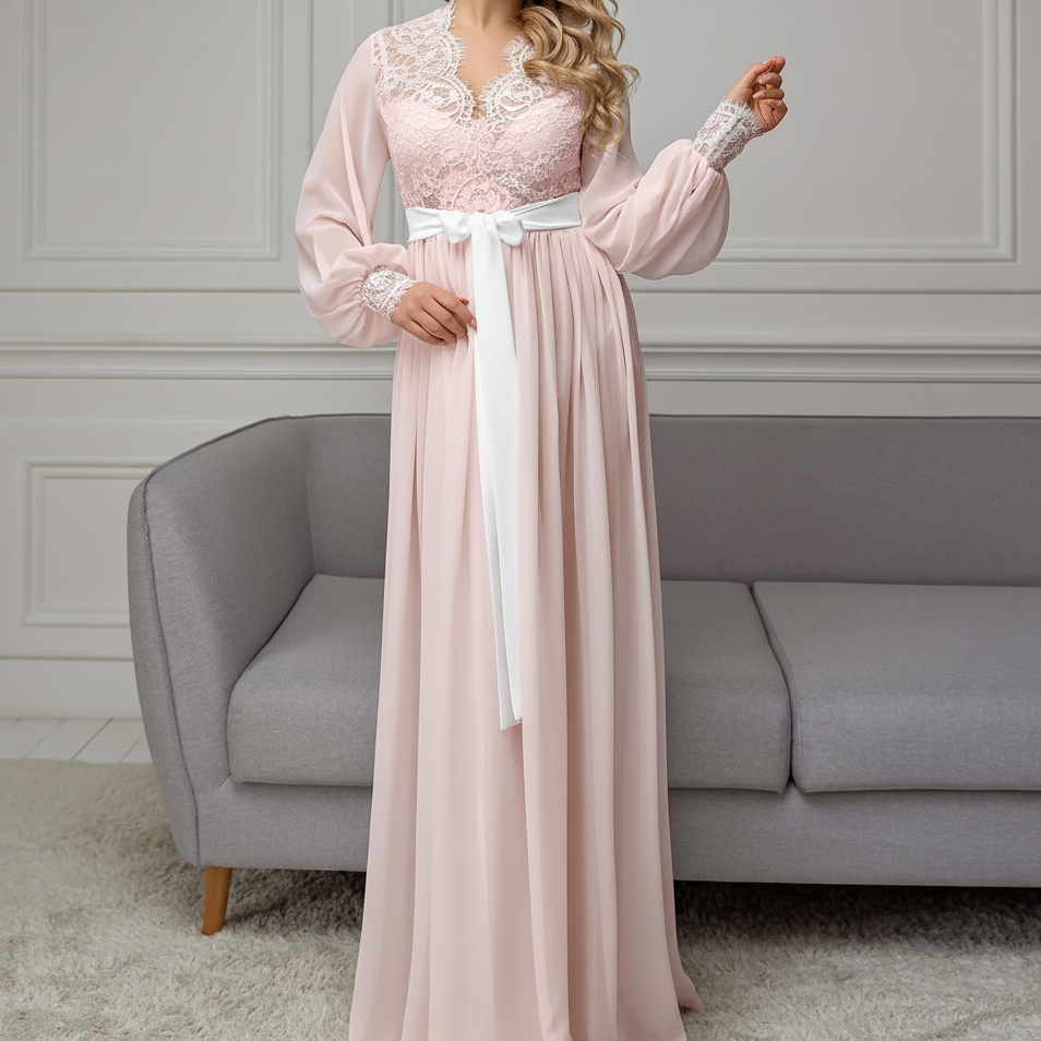 لانجري طويل ناعم وفخم 🤍 تفاصيل الدانتيل عليه بتعطيه لمسة أنوثة ناعمة، وقماشه خفيف ومريح