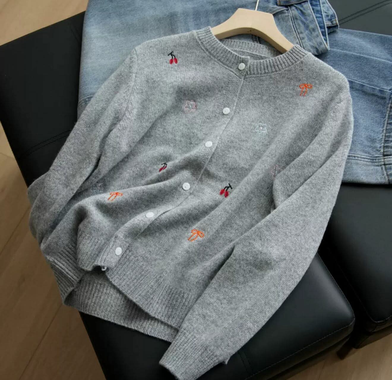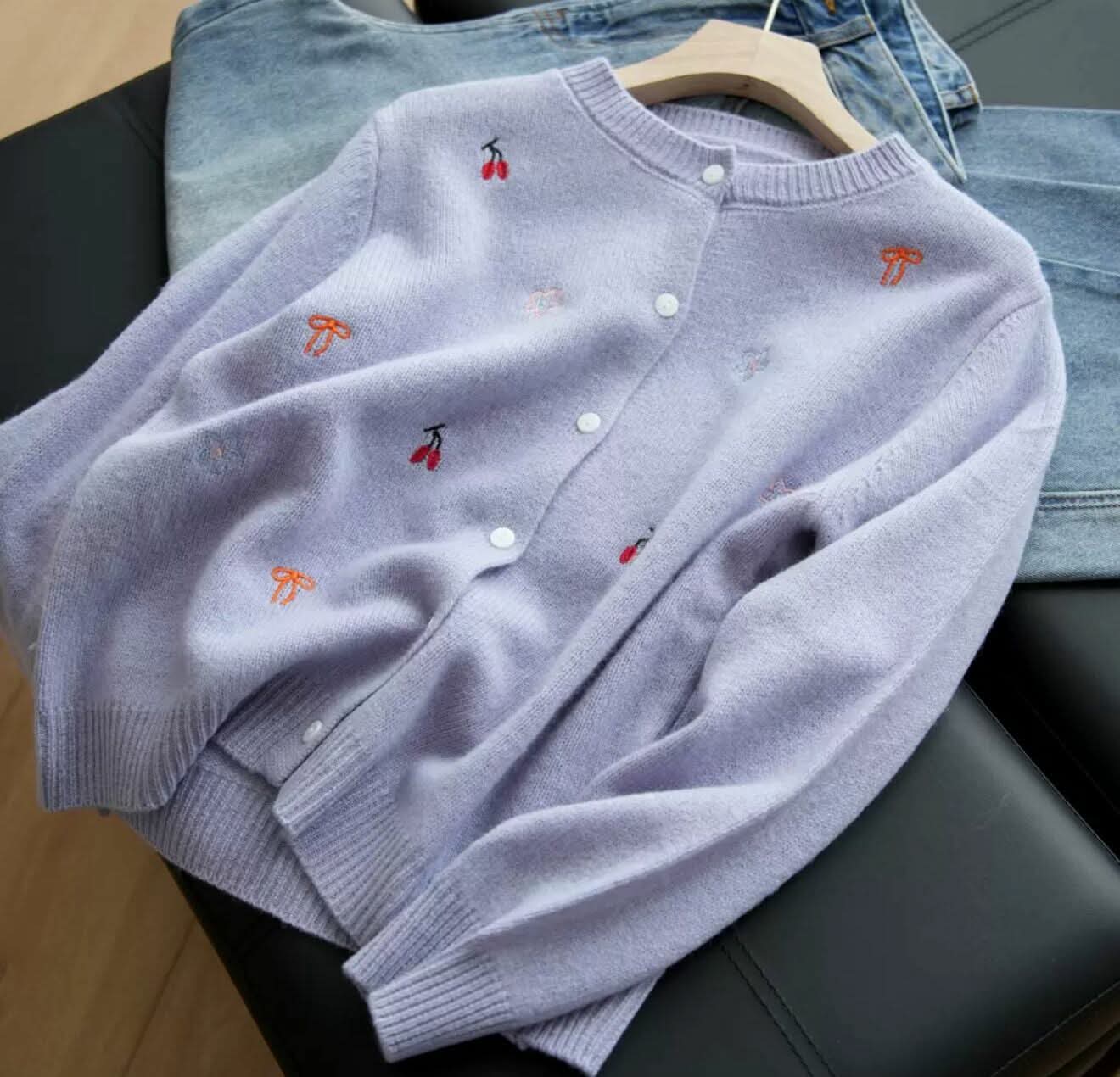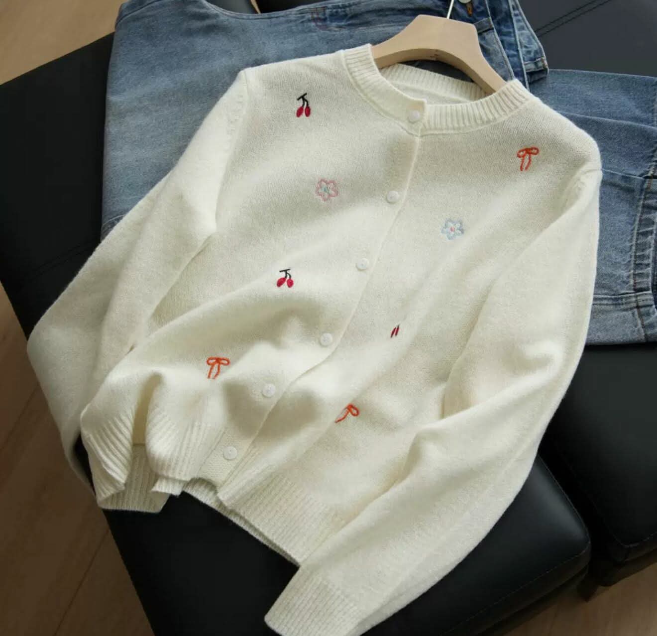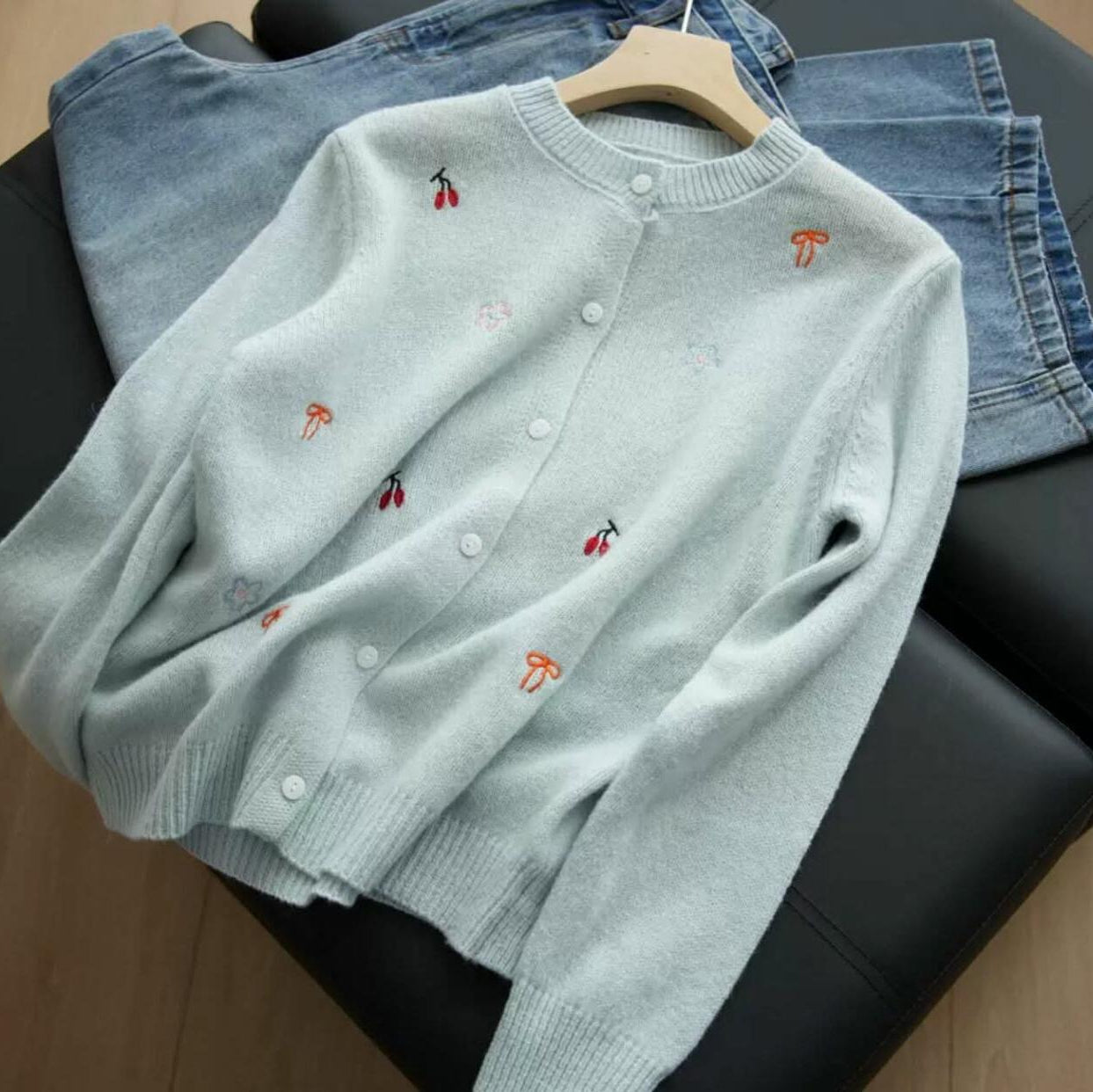 كارديجان صوفي نسائي مطرز بالكرز والأزهار