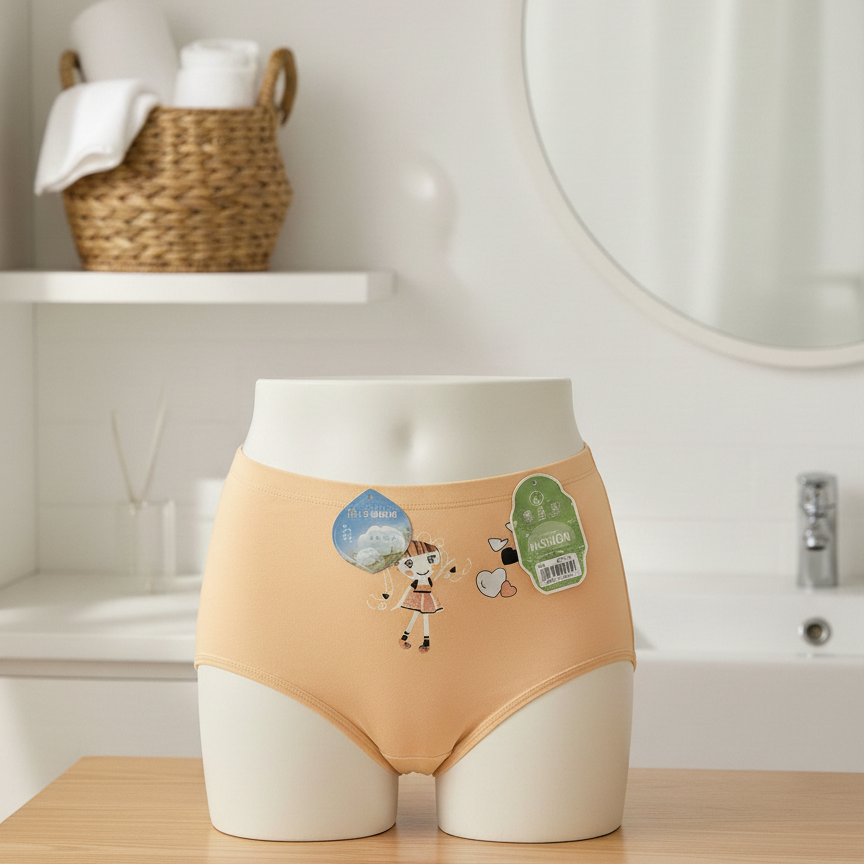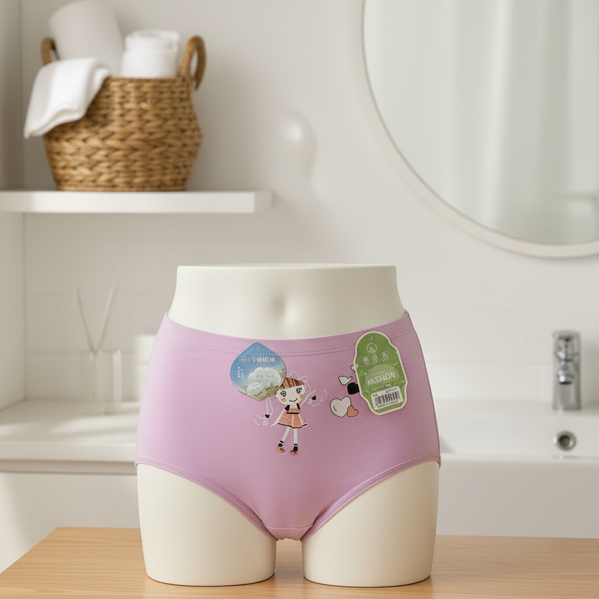 سليب قطن ناعم ومريّح، خصره عالي وبنقشة بناتية لطيفة بتخليه عملي وحلو بنفس الوقت 🌸💖.