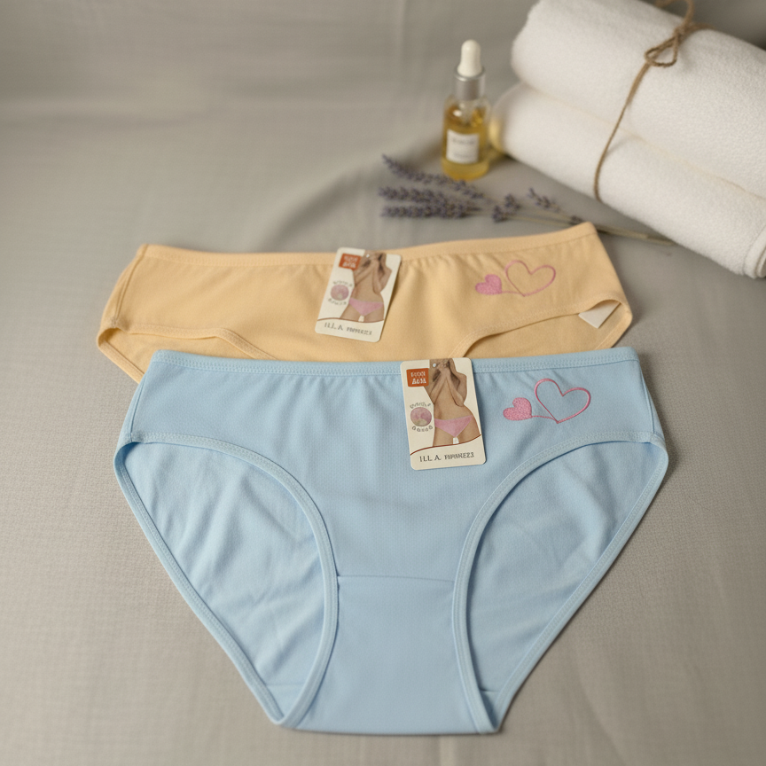 سليب صبايا ناعم ومريّح، عليه نقشة قلوب لطيفة بتضيف لمسة أنوثة ودلع 💕✨.