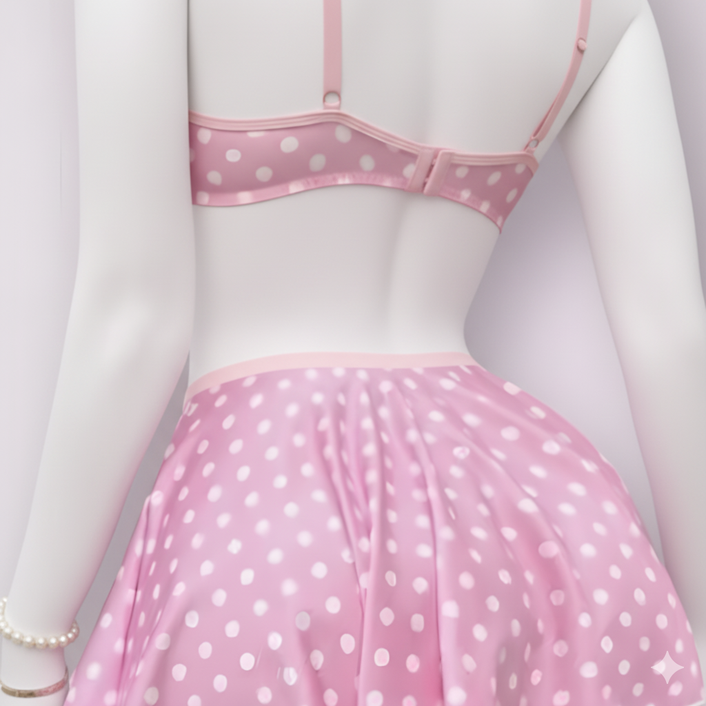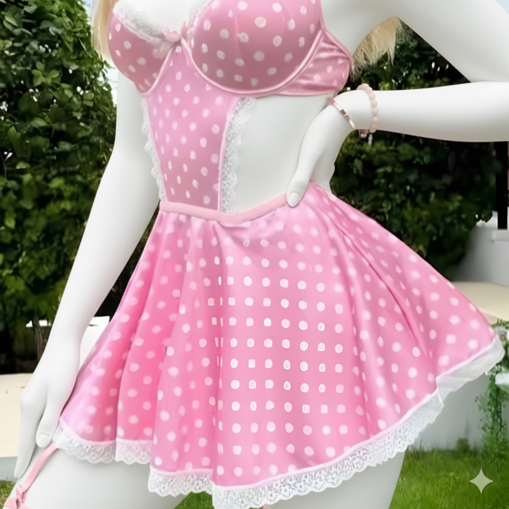 لانجري ناعم بخامة ساتان لامعة، عليه نقشة بولكا دوت بتعطيه لمسة أنثوية لطيفة 🎀💖.