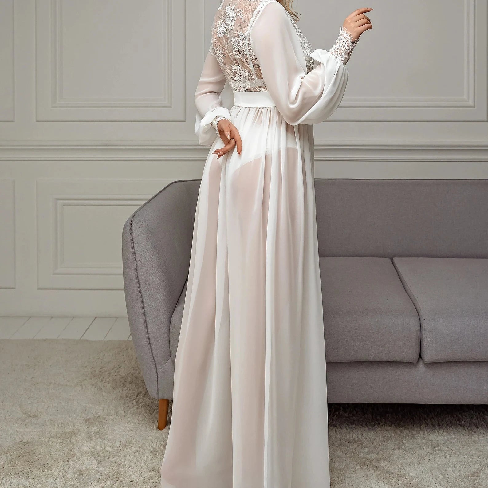 روب دانتيل أبيض أنيق