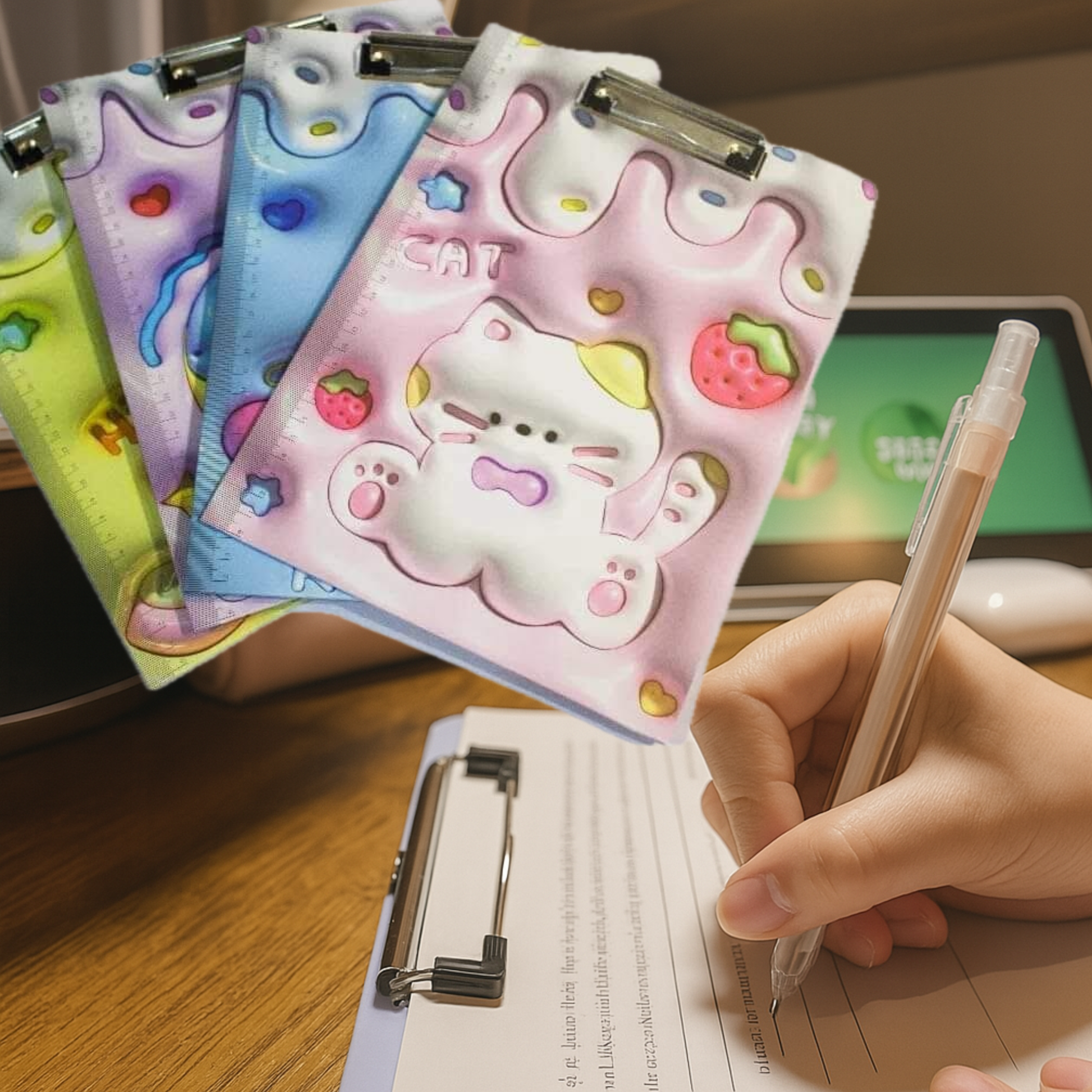 لوح الكتابة بتصميم كيوت مع مشبك ومسطرة
