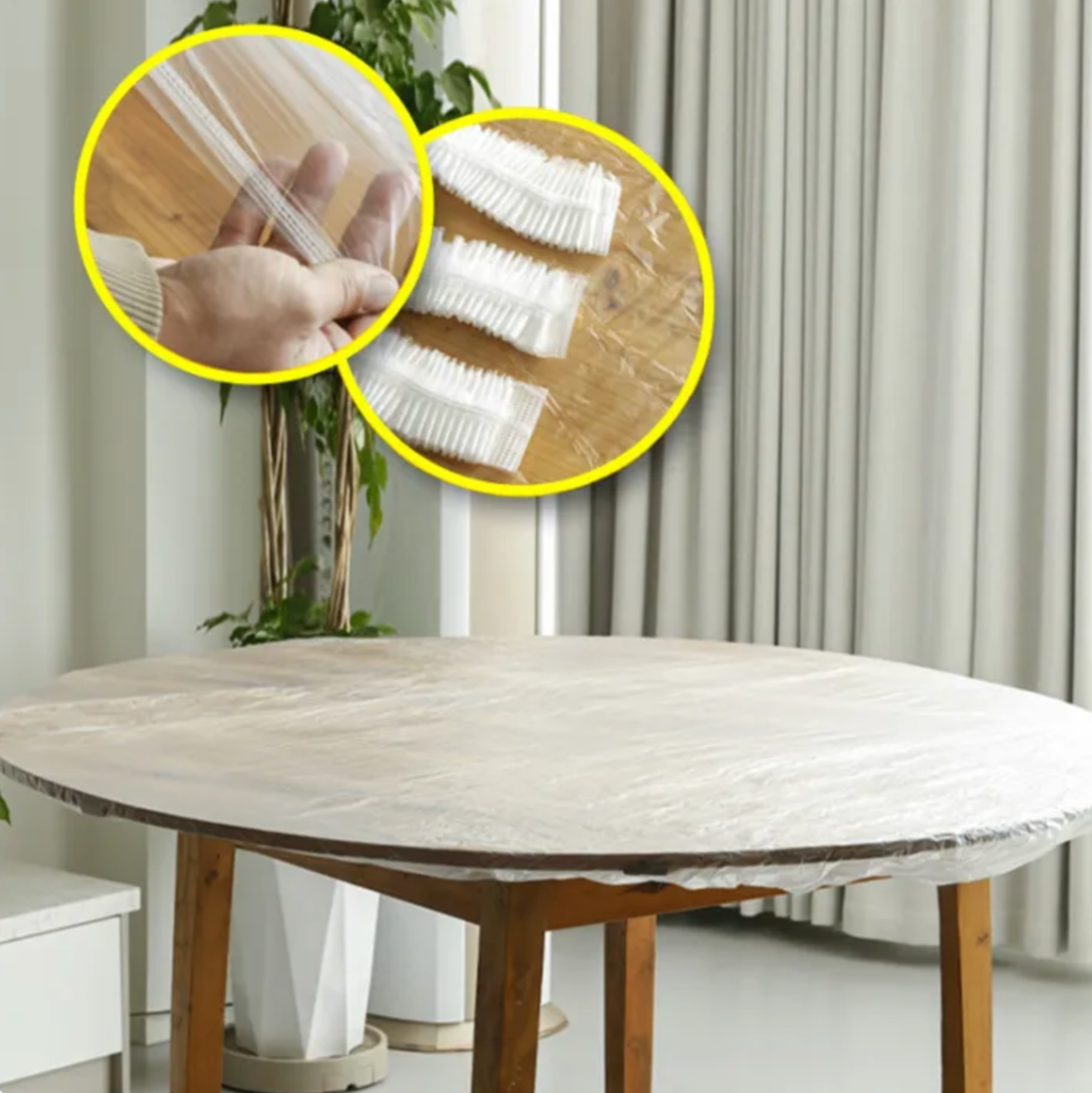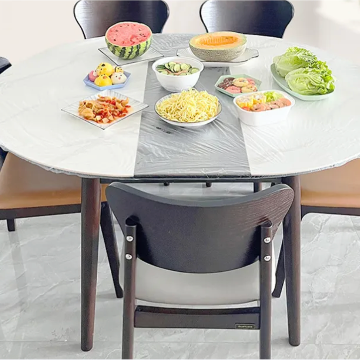أغطية نايلون مطاطية تغلف الطاولات وتحافظ على الأكل طازج ونظيف، مقاس ا متر و٢٠ سم . سهلة الاستخدام وتشيلها وتحطها بسرعة، ممتازة لحماية الطاوله اثناء الطعام من بقايا الأكل