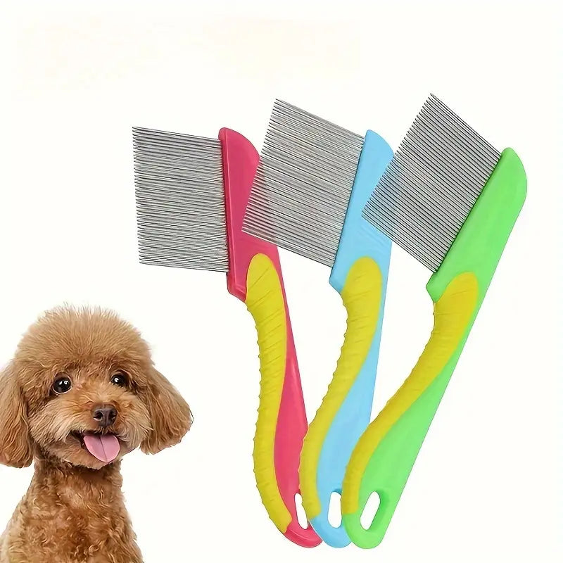 مشط معدني قوي ومتين للكلاب والقطط، مصنوع من الاستانلس ستيل المقاوم للصدأ. تصميمه الخاص بأسنان ضيقة جداً بيخليه مثالي عشان يشيل البراغيث وبيض البراغيث والقمل من فرو حيوانك الأليف بكل سهولة لون عشوائي