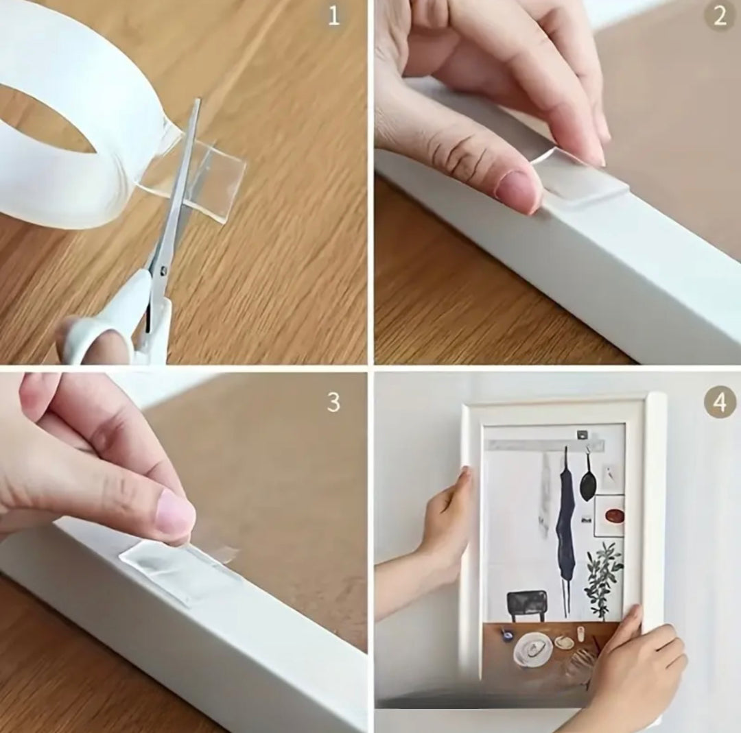 بيمسك بإحكام وبتقدر تقصه بالطول اللي بدك ياه. بيثبّت أي إشي تقريباً، من أدوات المطبخ للريموت، حتى تعلي فيه مقالي أو رفوف صغيرة. مش بحاجة لا مسامير ولا حفر، بس بلزق وخلص — وبتقدر تشيله بدون ما يخرب الحيط. عملي، قوي، وبنفع بكل مكان بالبيت أو المكتب!