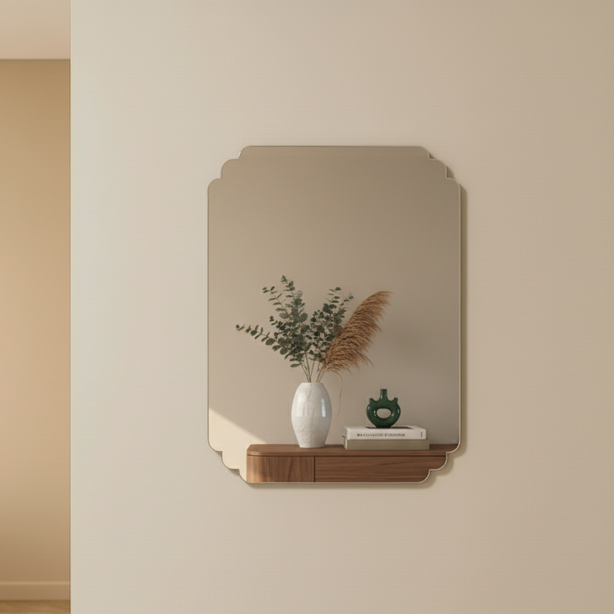 مرايا بلاستيكية خفيفة الوزن ذات وجهين يمكن لصقها على الأسطح المختلفة. تُستخدم لتزيين الغرف وإضافة لمسة جمالية واسعة للمساحات الصغيرة(مقاس طول40.50سم عرض30سم)