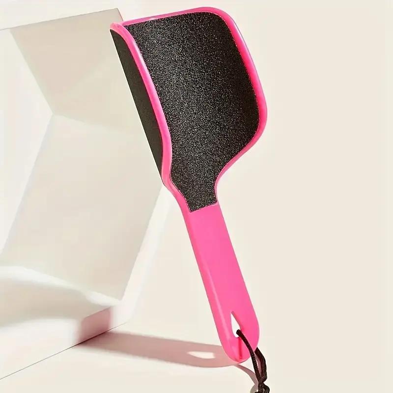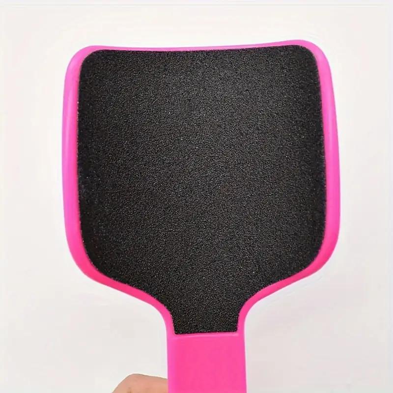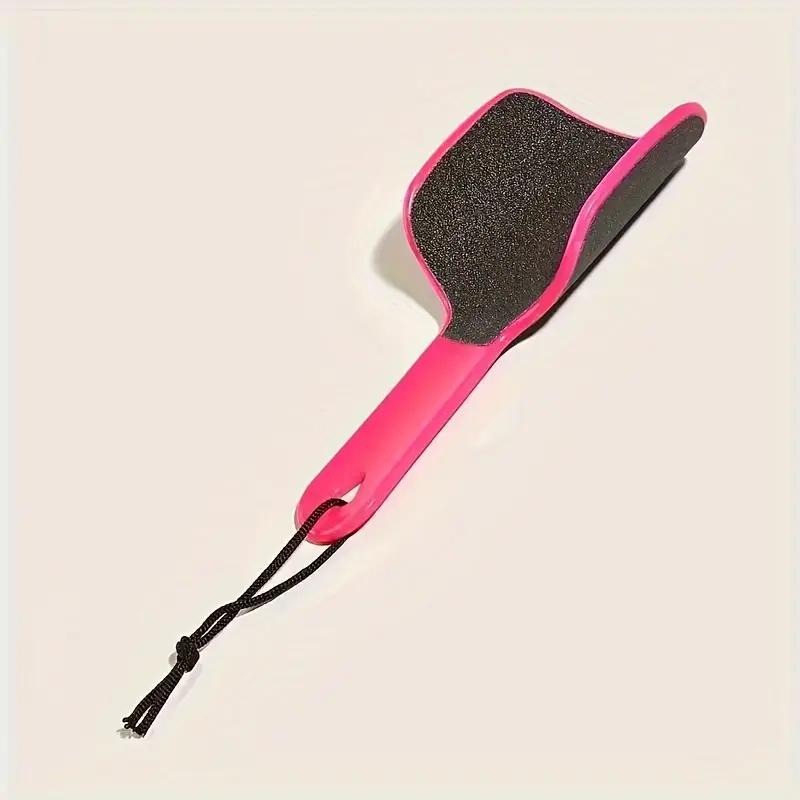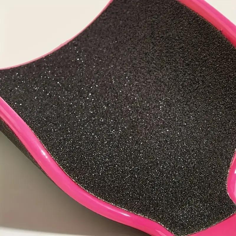 يتميز المنتج بتصميم عملي ومريح لليد، مقبضه وردي اللون وبه فتحة صغيرة في نهايته تسمح بتعليقه. الجزء الأسود هو السطح الخشن الذي يقوم بعملية الكشط أو البرد