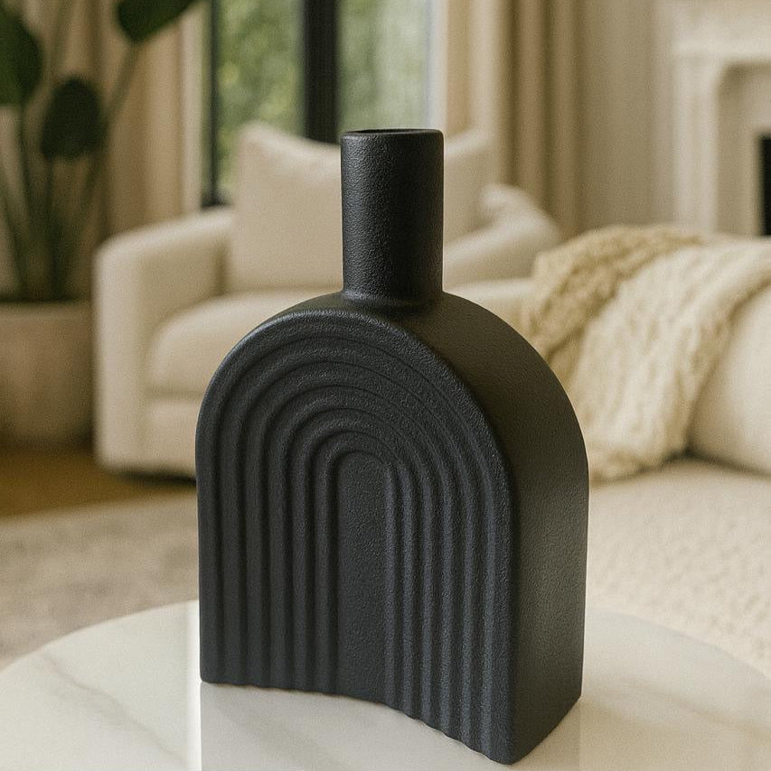 فازة شكلها غير عن العادة! تصميمها على شكل قوس بخطوط ناعمة بتعطي لمسة فخامة لأي زاوية بالبيت ✨