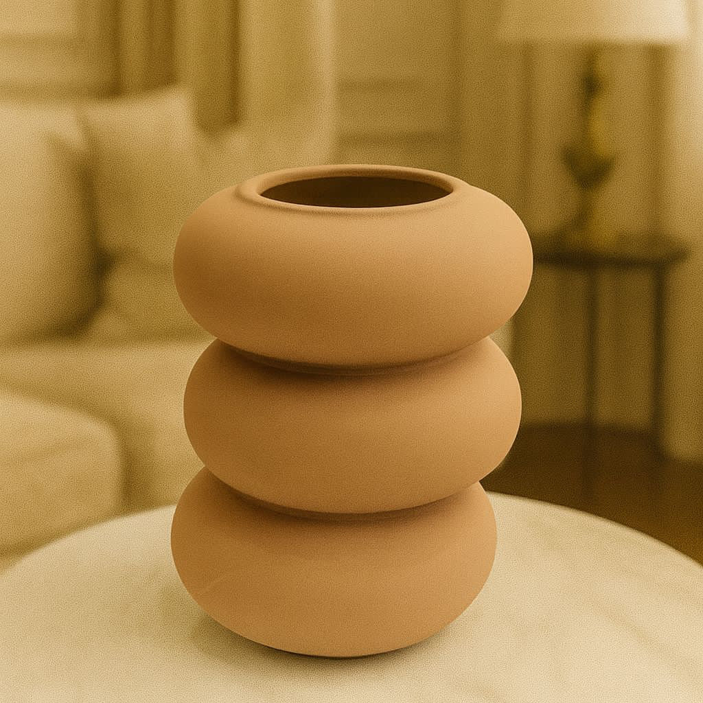 هاي الفازة تحفة فنية بكل معنى الكلمة! تصميمها بطبقات دائرية ناعمة ولونها الترابي بيعطي إحساس دفا وهدوء للمكان ✨