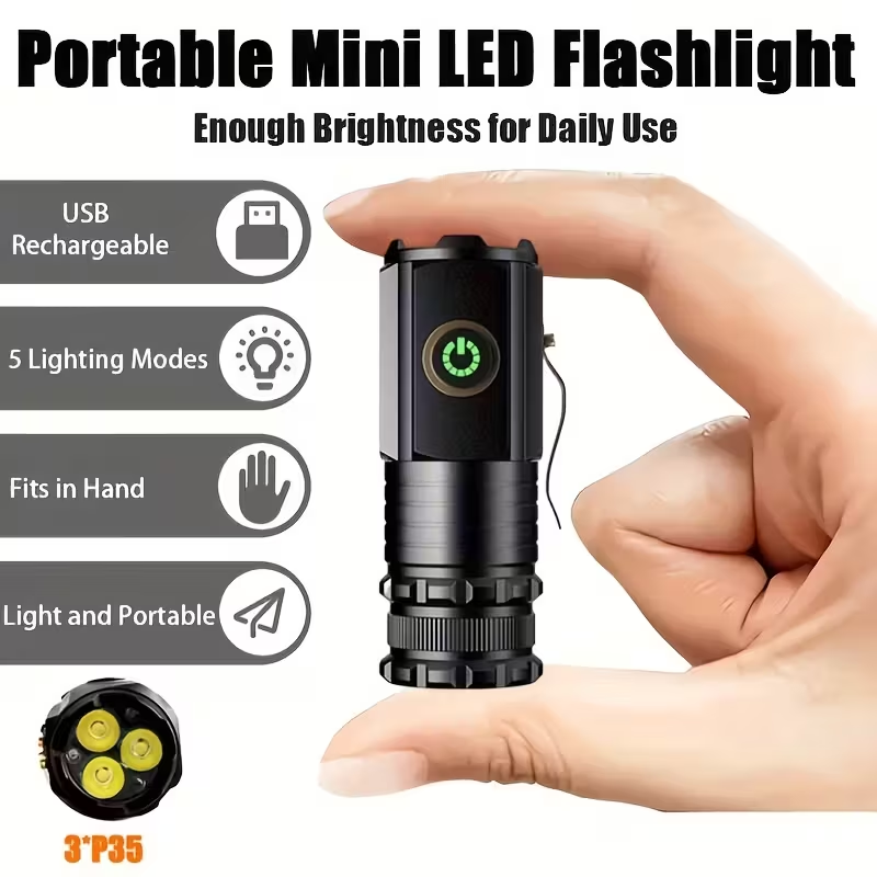 كشاف صغير عملي وسهل الاستخدام، بيشتغل بزرار ضغطة واحدة، وفيه كليب من ورا تقدر تعلقه على الشنطة أو الجيب. البطارية بتاعته تعيش وقت طويل، وبتتشحن عن طريق كابل Type-C. حجمه صغير بس نوره قوي، بينفع في كل حاجة سواء في البيت، العربية، أو وقت الطوارئ.