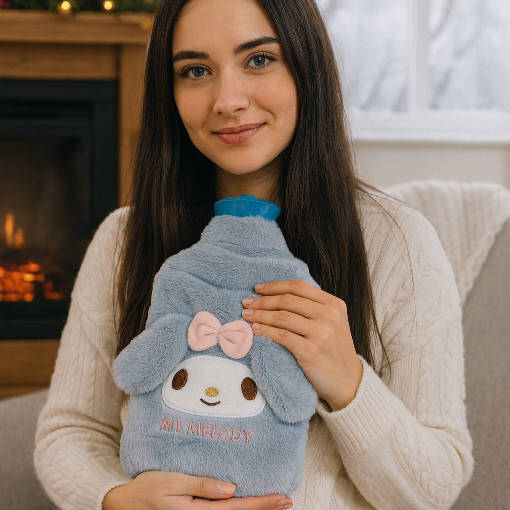 هاي القِربة عنجد بتجنّن! مغلّفة بفرو ناعم كتير وشكلها شكل "ماي ميلودي" الزغنونة، بتفوت فيها إيدك من تحت وبتطلع من فوق، يعني بتدفّي إيديك من الجهتين. حجمها ٢ لتر، بتضل المي فيها سخنة وبتقعد معك فترة منيحة. بتناسب الشتا والبرد، خصوصًا لما تكون قاعد قدام الدفاية أو بتتفرج على فيلم. شكلها كيوت وبتنفع كهدية بتفشّ القلب!