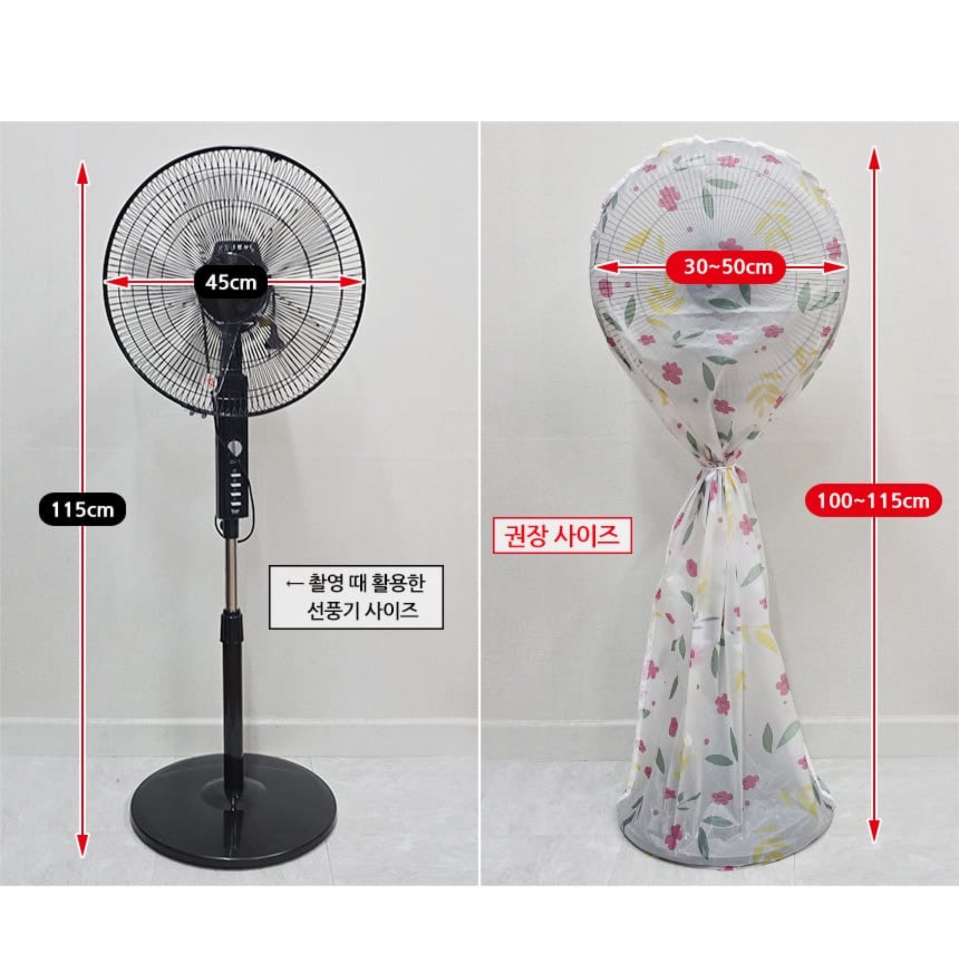 ✅ بتركب بسهولة ع أي مروحة واقفة حجمها بين 30 – 50 سم (دائرة المروحة) وبطول من 100 – 115 سم.