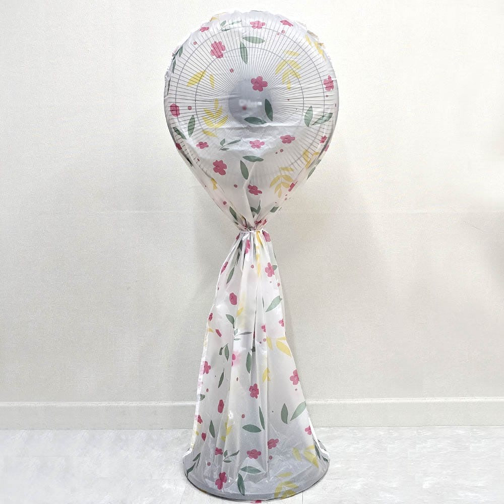 هاي غطا مروحة عملي بتيجي على شكل كفر قماشي خفيف مع رسومات ظريفة. بتحمي المروحة من الغبرة وبتخلي شكلها أرتب خصوصًا بالصالون أو غرفة النوم.