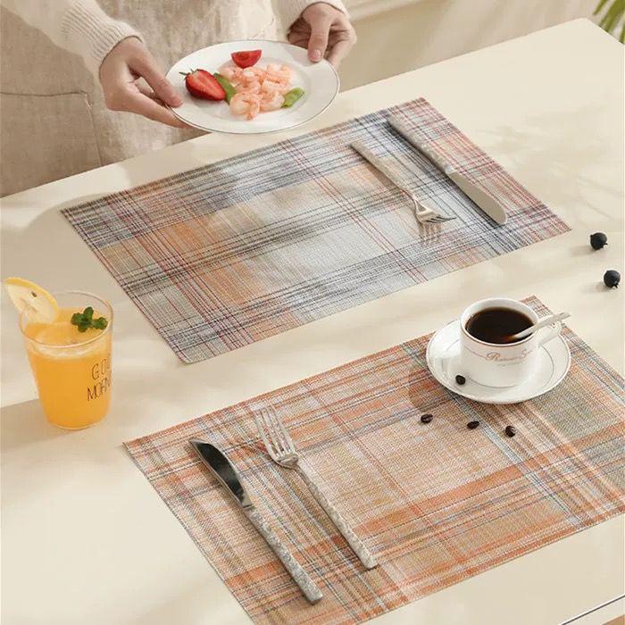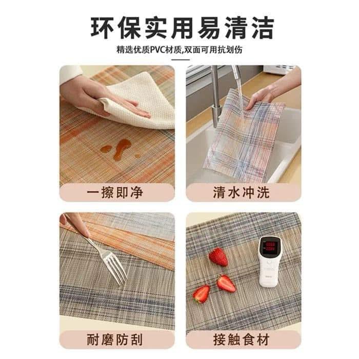 هذه المفارش هي قطع عملية جداً مصممة عشان تنحط تحت طبق الأكل أو المشروبات. هي مصنوعة من مادة PVC (بلاستيك قوي وعالي الجودة)