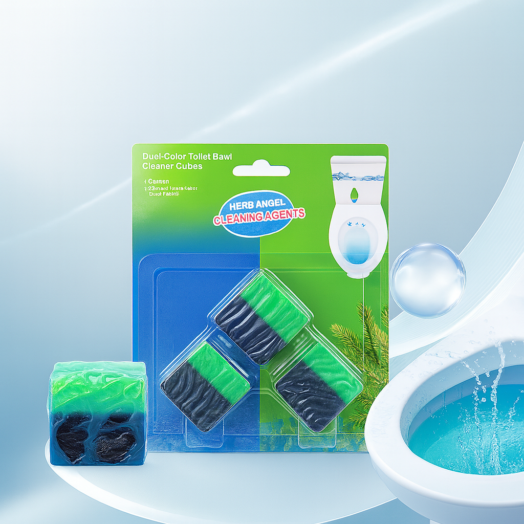 هذه هي مكعبات التنظيف ثنائية اللون اللي بتخلي التواليت نظيف وريحته منعشة دايماً. طريقة استخدامها سهلة جداً: ببساطة بتفتح العبوة وبتحط المكعب في خزّان (سيفون) المي تبع التواليت