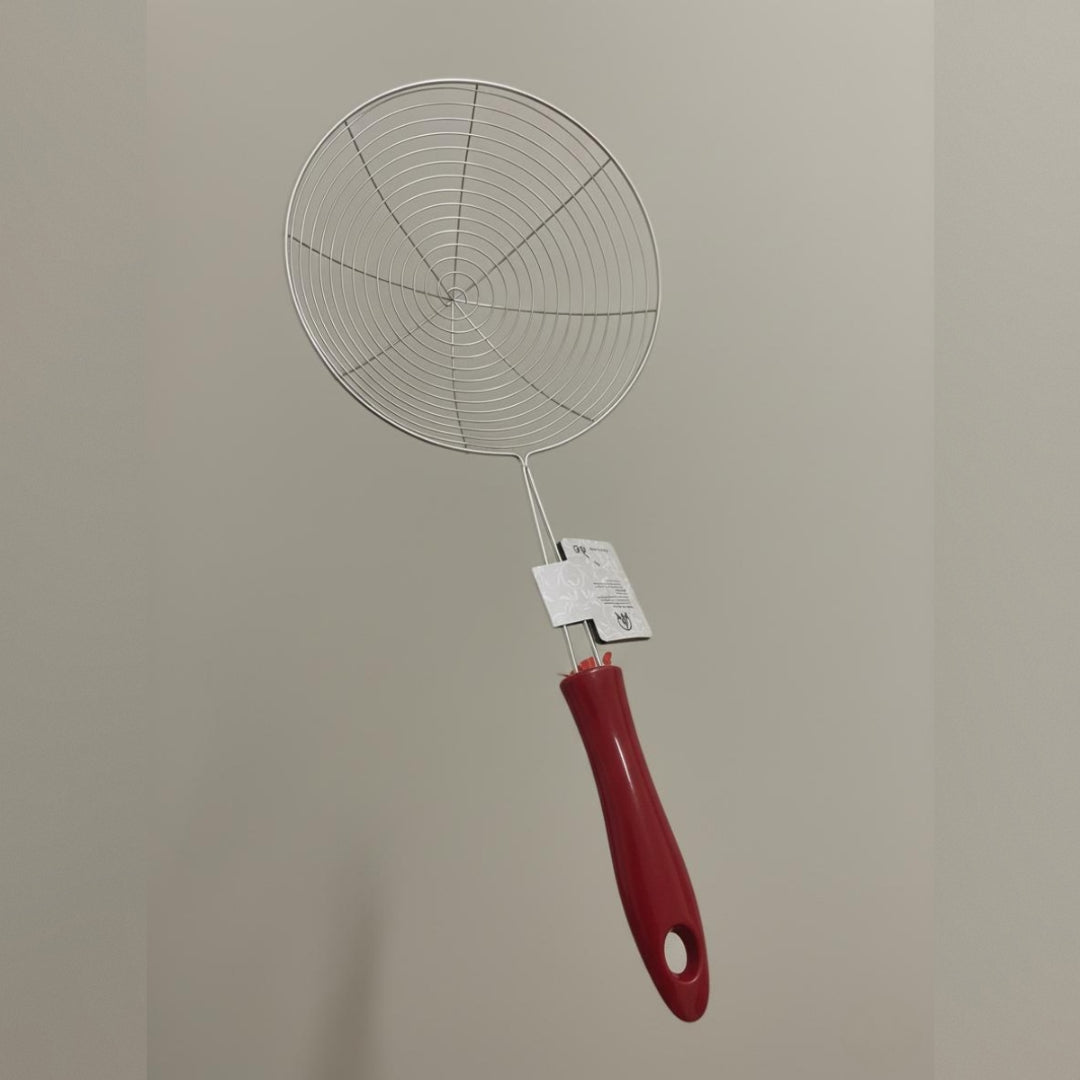 داة مطبخ تستخدم لـ تصفية وإزالة الأكل من السوائل، زي الزيت المغلي أو الماء الساخن.