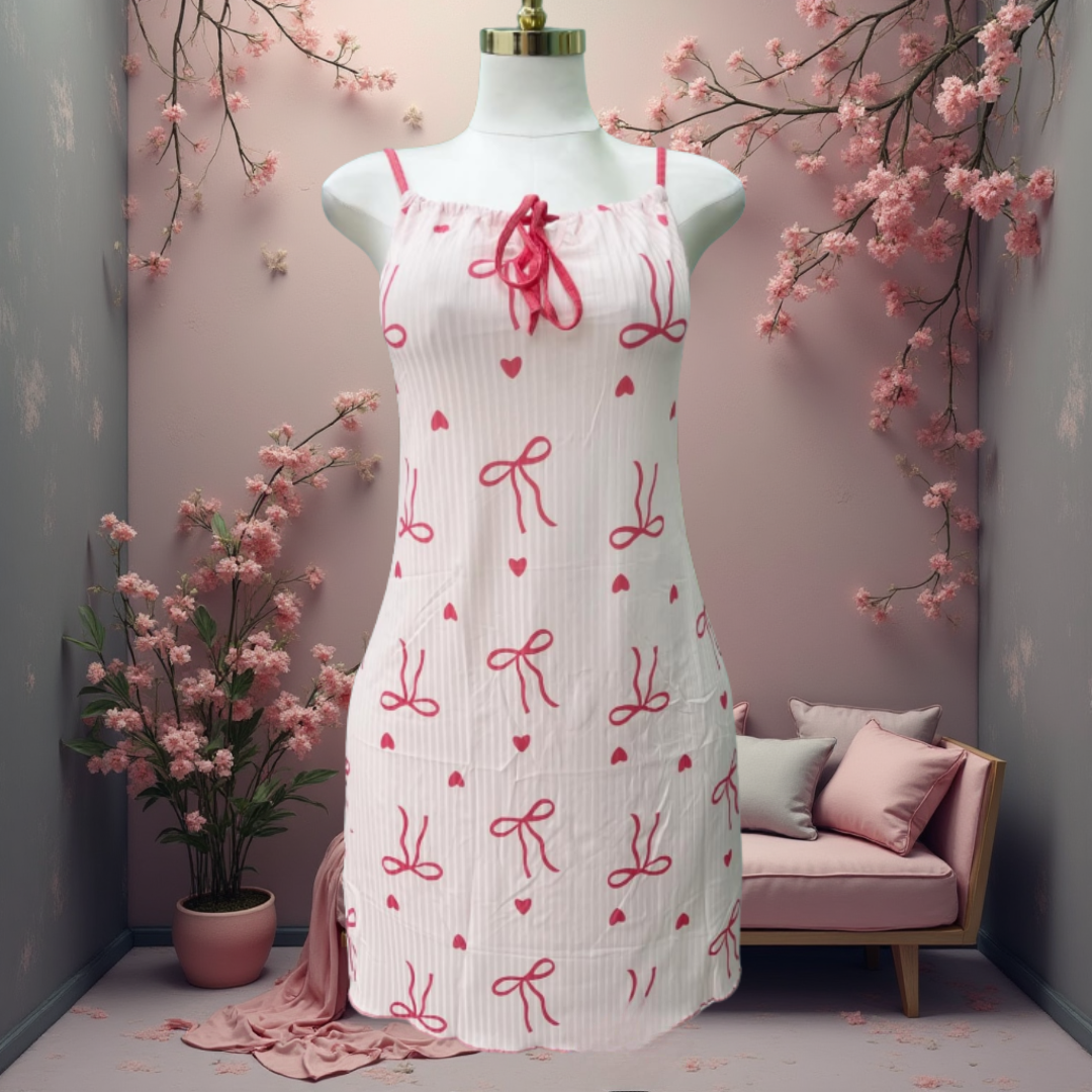 قميص نوم ناعم بنقشة فيونكات وقلوب