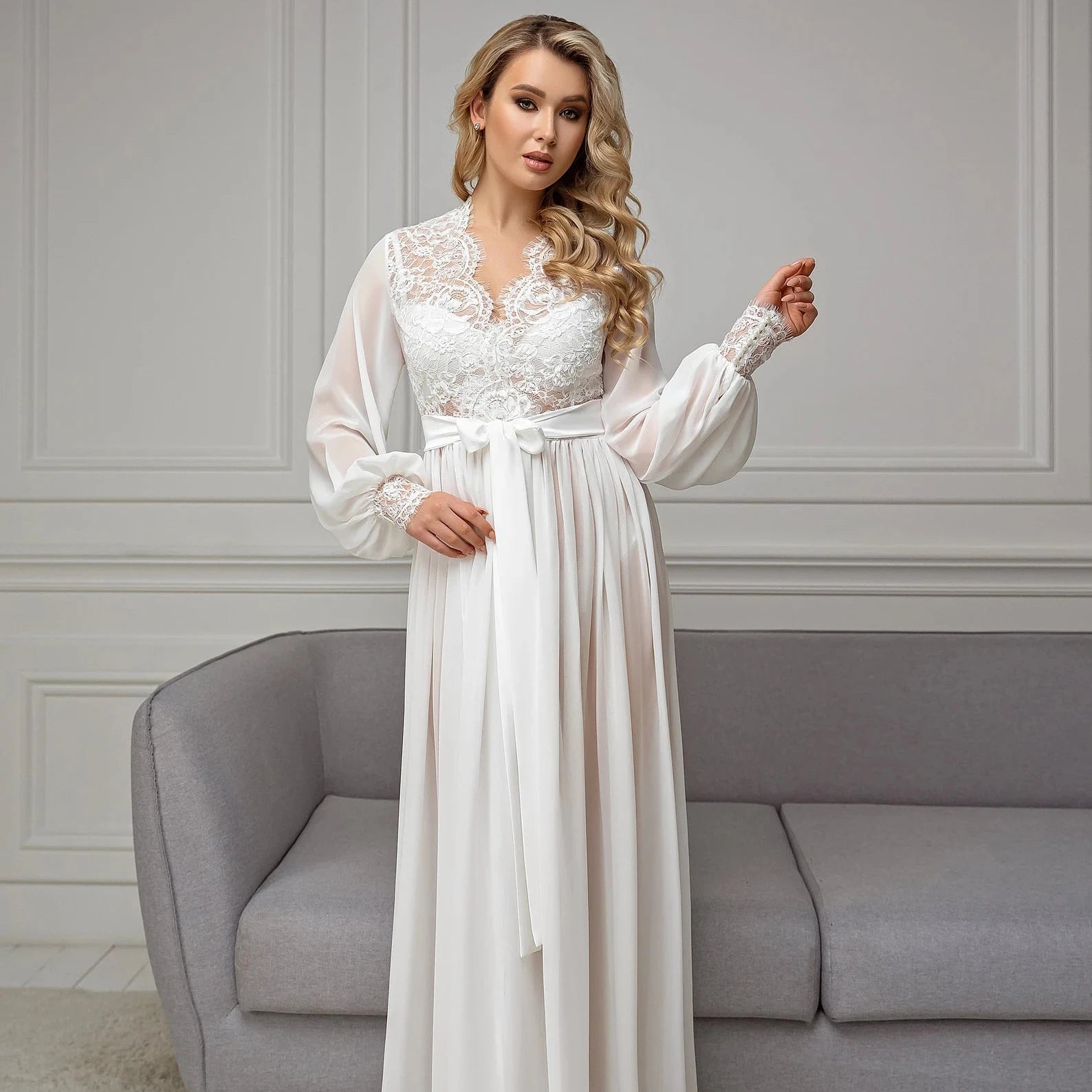 لانجري طويل ناعم وفخم 🤍 تفاصيل الدانتيل عليه بتعطيه لمسة أنوثة ناعمة، وقماشه خفيف ومريح