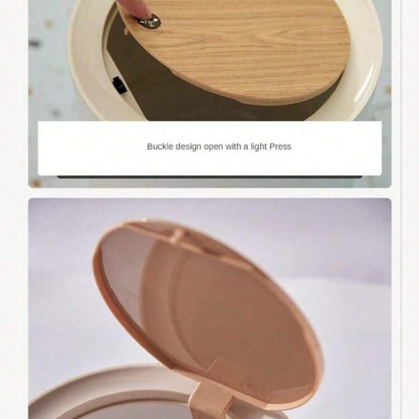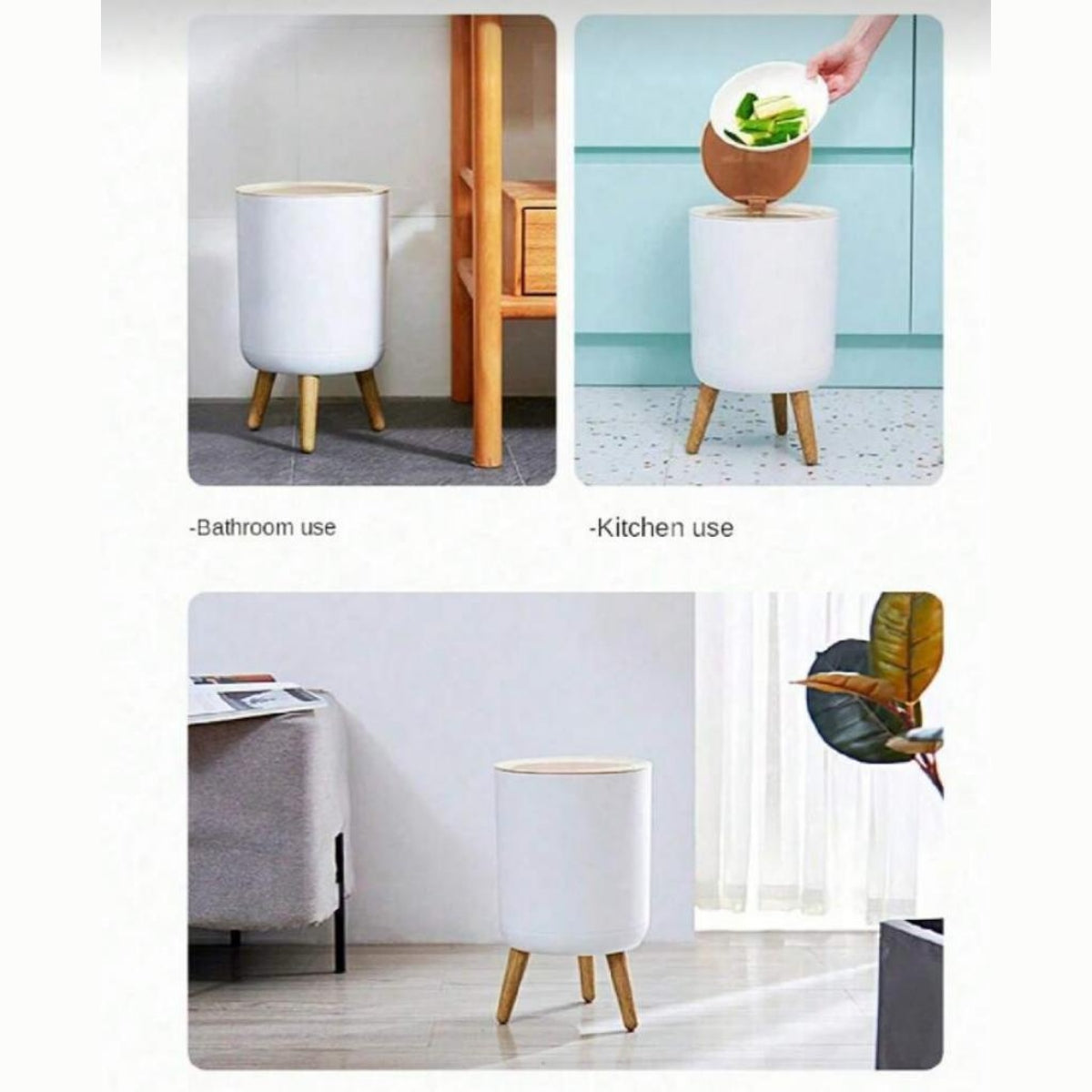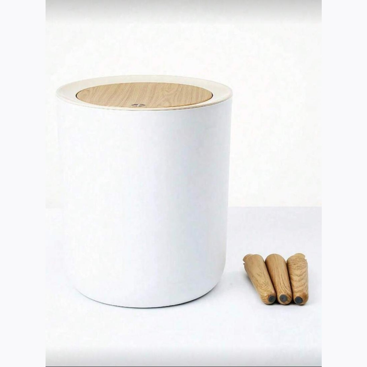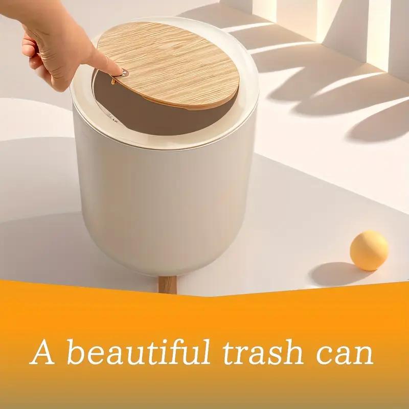 سلة نفايات عصرية بغطاء يعمل بالضغط وأرجل خشبية