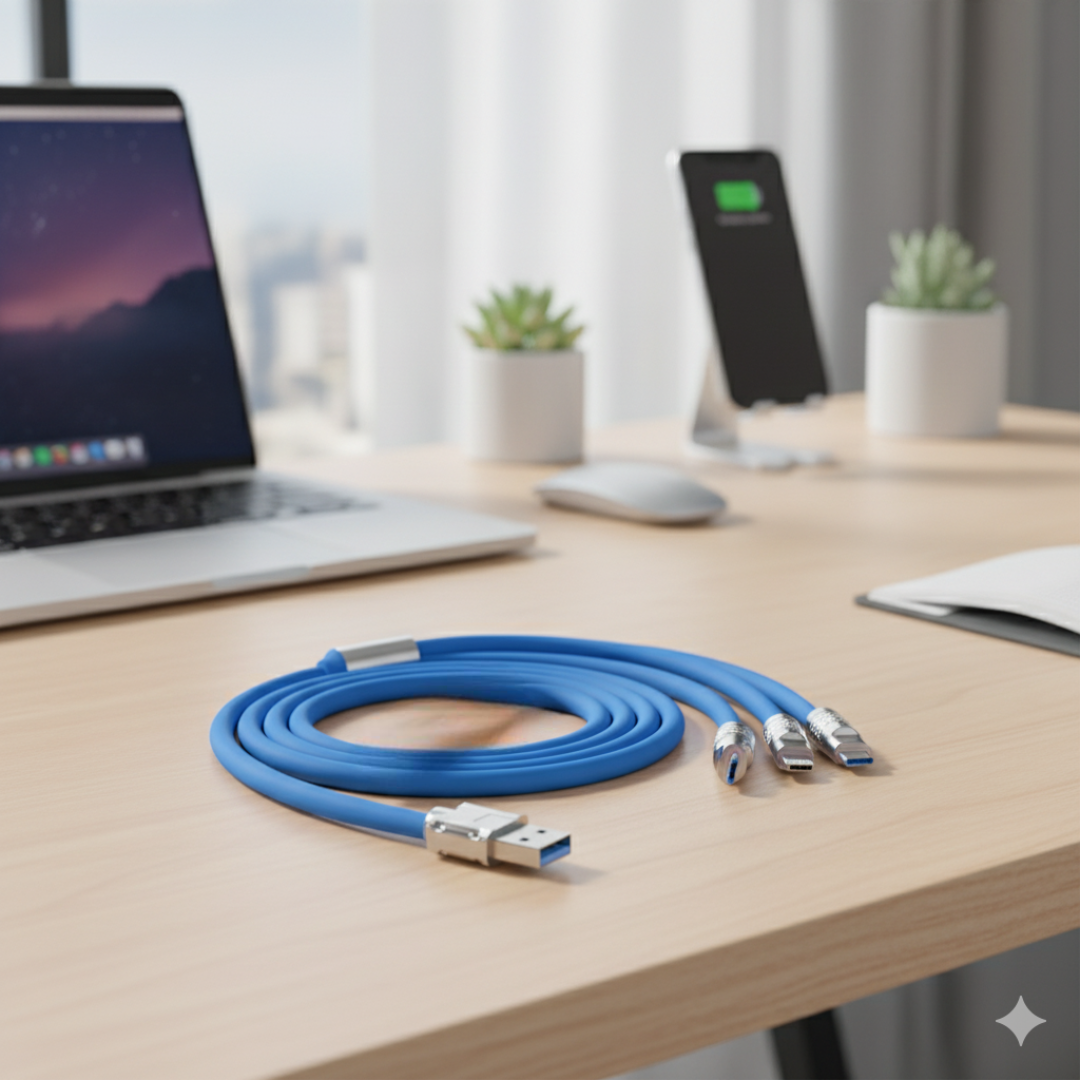 حافظ على أجهزتك مشحونة في أي مكان مع كابل الشحن ثلاثي الوظائف بليز كونكت. ووصلاته المعدنية الفاخرة، ويضم ثلاثة منافذ: مايكرو USB، لايتنينغ، وUSB-C. تصميمه الأنيق المقاوم للتشابك وتوافقه الشامل يجعله خيارًا مثاليًا للاستخدام اليومي والسفر.