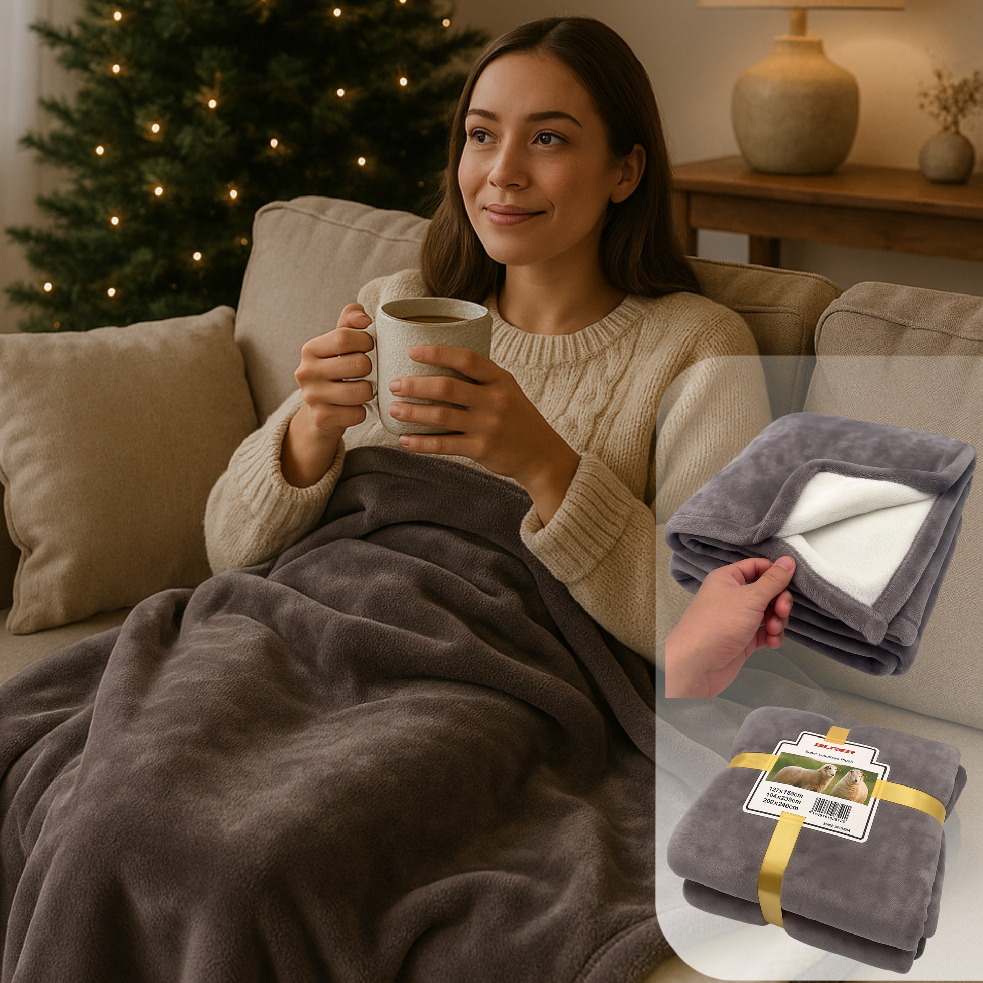 تخيّل وانت متكيّ بالبيت، الجو برّد، ومغطّي نفسك بهالبطّانيّة النعومة اللي ما تنوصف! وجهين مميزين: واحد رمادي أنيق، والثاني أبيض ناعم كأنك متلحّف غيمة. ثقيلة تدفي، خفيفة ما تثقل عليك، وتناسب الجلسات الشتوية قدام التلفزيون أو مع فنجال قهوة دافي. بتصير رفيقتك المفضّلة طول الشتاء!