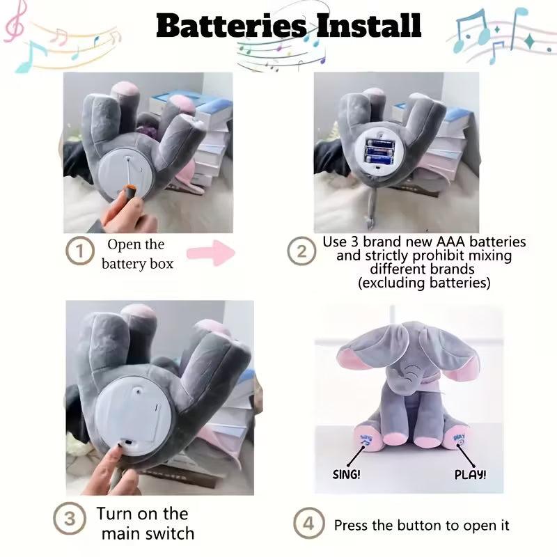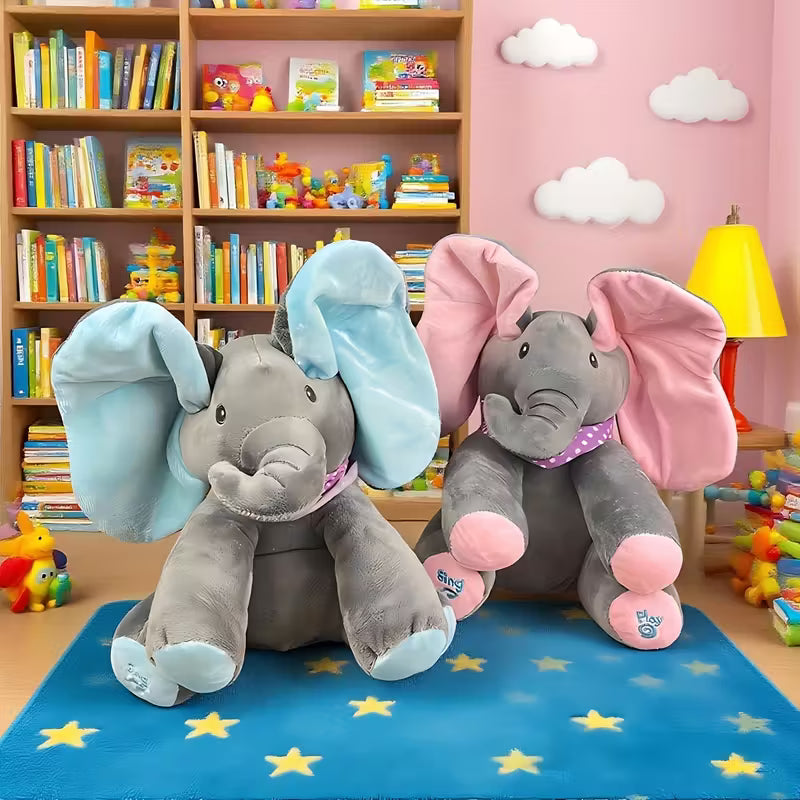 هاد الفيل مش أي لعبة! 😍 بيغنّي وبحرّك دنيه بطريقة بتجنّن، بلعب مع الأطفال لعبة الغمّيضة وبيضحّكهم بدون توقف 😄 خامته ناعمة وطرية عالآخر، ومناسب كهدية لأي مناسبة – عيد ميلاد، كريسماس، أو بس لتفرّح قلب حدا بتحبّه