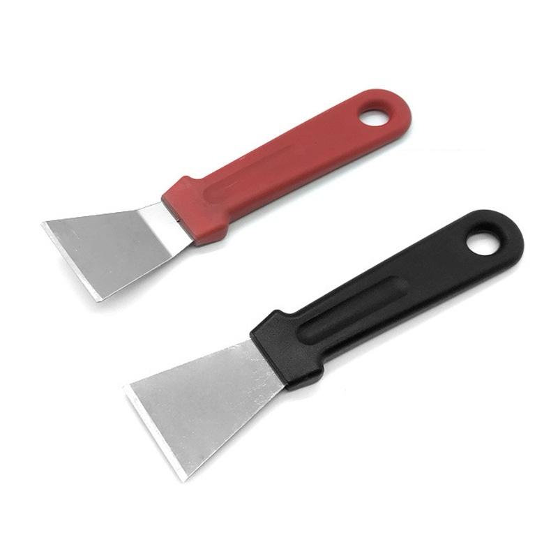 كاشطتين صغار، وحدة إيدها حمرا ووحدة إيدها سودة، شفراتهم معدنية حادة ومسحوبة. بتستخدم لإزالة البقع، الكشط، أو فرد المعجون والدهان بكميات صغيرة. حجمهم عملي ومناسب للأعمال اليدوية الخفيفة.