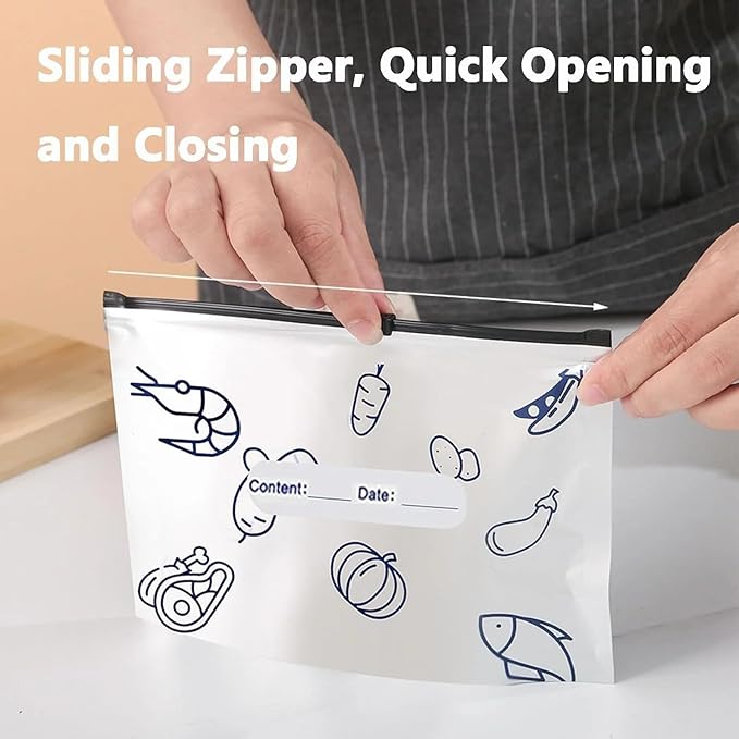 مجموعة من 10 أكياس تخزين قوية ضد المي والزيت، بتحافظ على الأكل طازج ومعزول عن الهواء. فيها سحاب انزلاقي سهل الفتح والإغلاق، وممكن تغسلها وتستعملها أكتر من مرة — مثالية للخضار، الفواكه، أو حتى الوجبات الجاهزة.