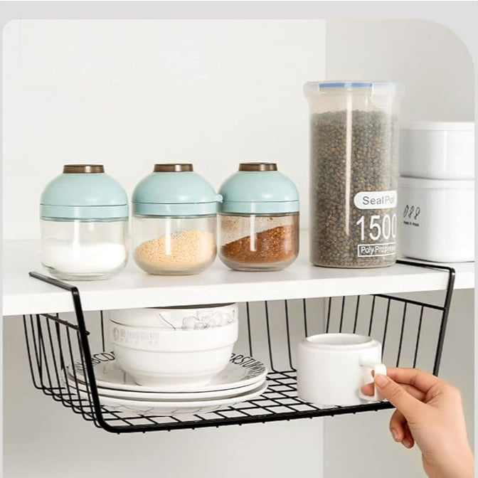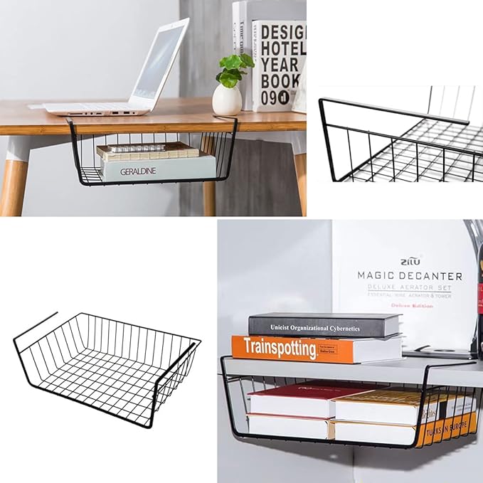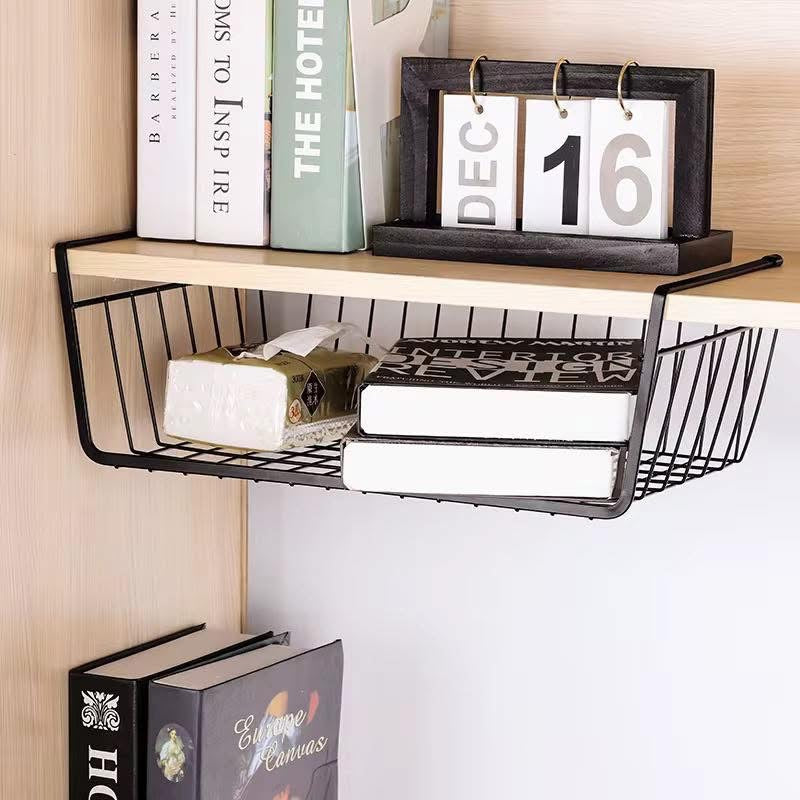 سلة تنظيم حديد تركب بكل سهولة تحت الطاولة أو الرف، بدون براغي أو تثبيت معقد. مناسبة للكتب، الأوراق، اللابتوب، أو أي أغراض خفيفة. بتوفر مساحة وبتخلي مكتبك أو غرفتك مرتبة ومنظمة. شكلها أنيق، حديد متين وما بتحتاج أدوات للتركيب – بس تركّبها وتستعملها فورً