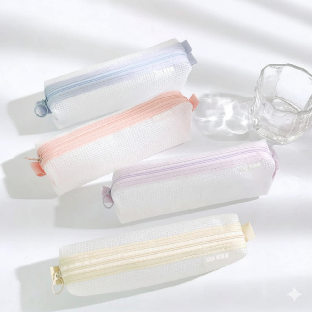 المقلمة ممتازة للطلاب والموظفين ولكل اللي يحبون الترتيب. مصنوعة من مادة سيليكون شفافة ( تخلي كل اللي جوا واضح،