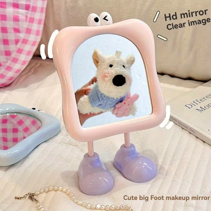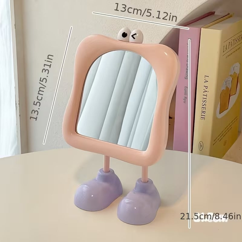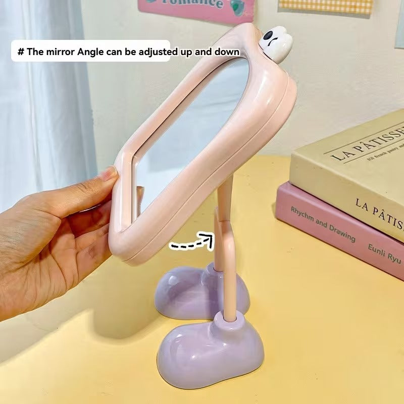 مرآة مكياج محمولة وعملية تتميز بتصميم جذاب لشخصية كرتونية. هي خيار مثالي للاستخدام على المكتب أو طاولة الزينة في غرف نوم الطلاب أو مكان العمل.