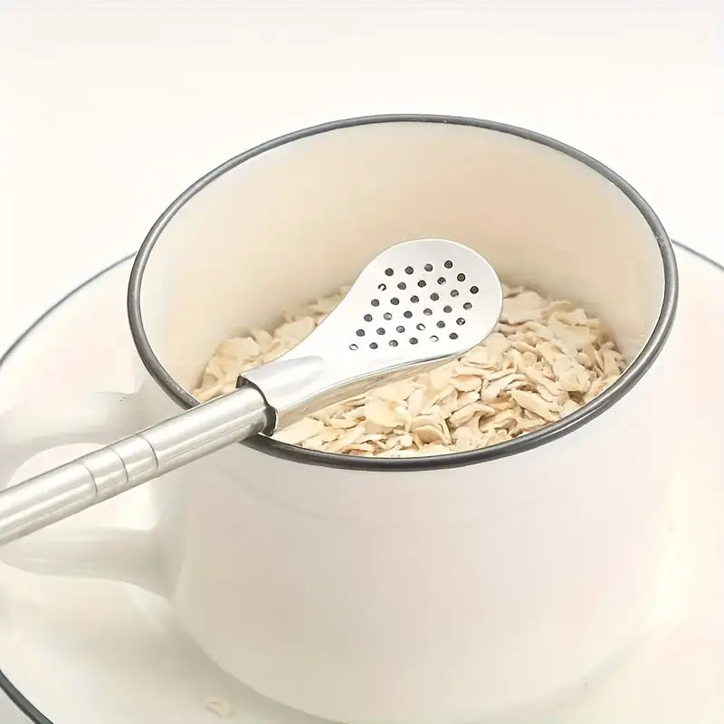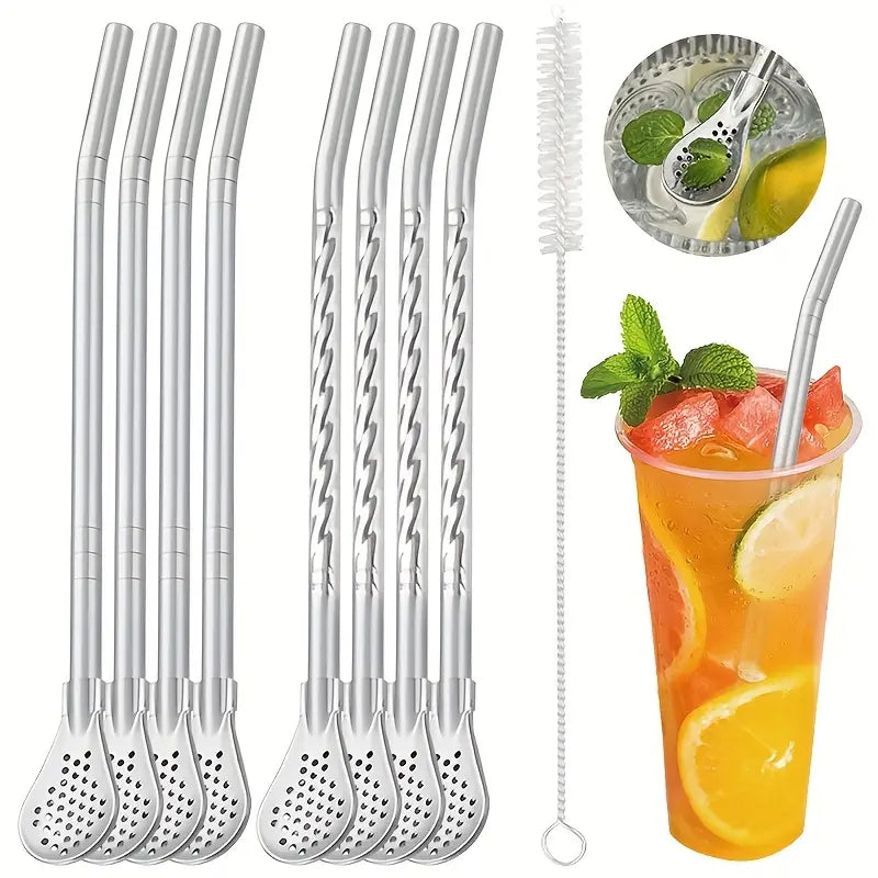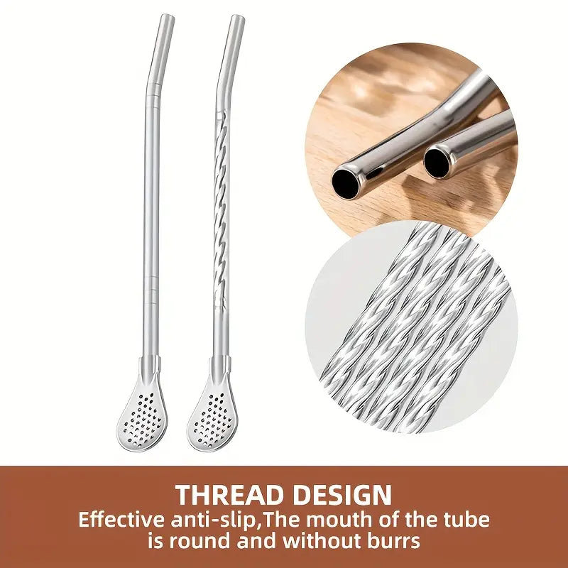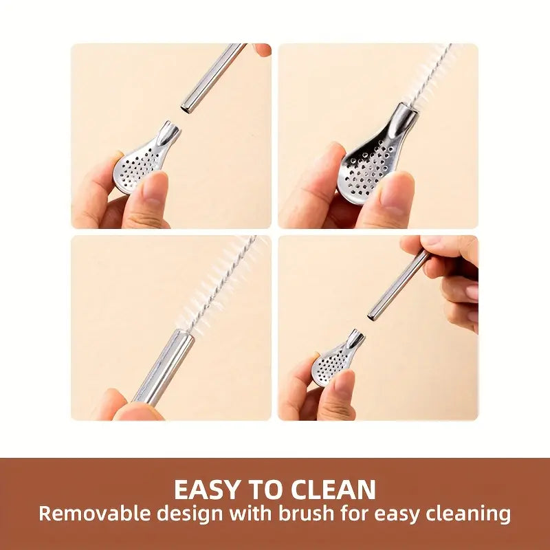 طقم المكون من 4 قطع هو الحل الأمثل للاستمتاع بمشروباتك المفضلة بأسلوب عملي وصديق للبيئة. القطعة الرئيسية عبارة عن شفاطة (ماصة) قابلة للفصل تتحول بسهولة إلى ملعقة تقليب أو ملعقة لسكب المشروبات مثل الشاي بالحليب والعصير. تصميمها المبتكر يتيح لك شرب وتقليب السوائل في آن واحد