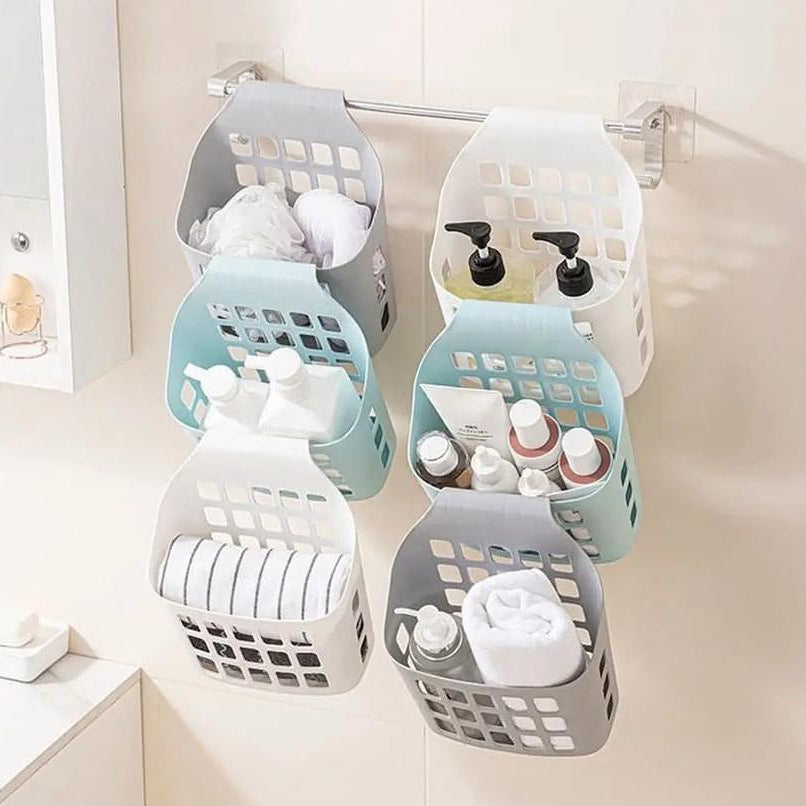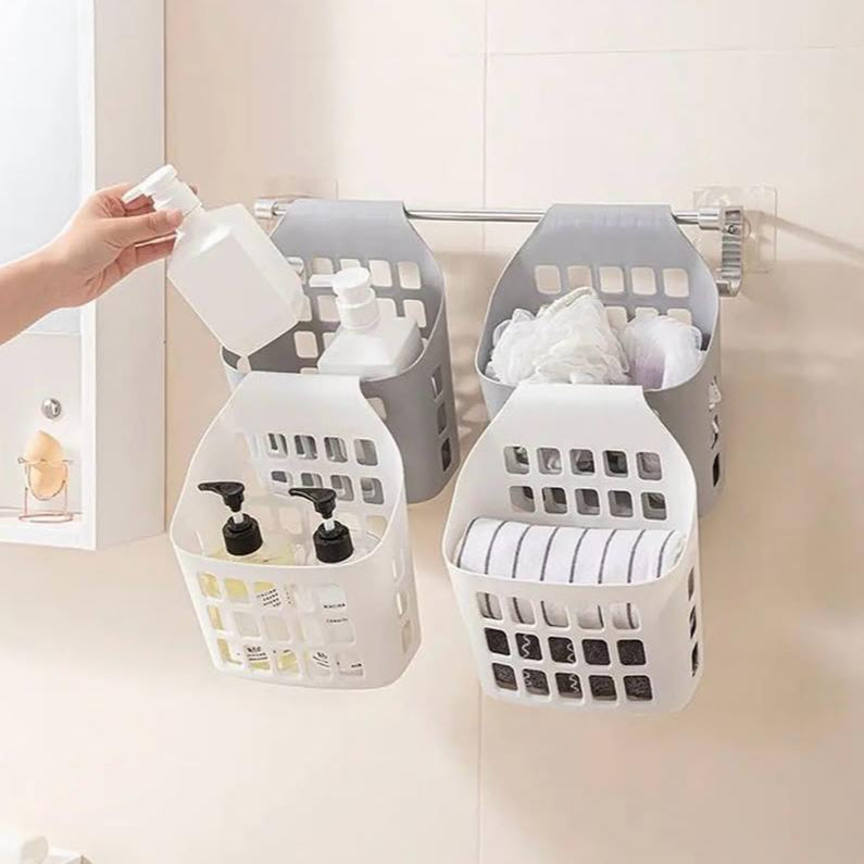 حل عملي ومثالي لتنظيم المساحات الصغيرة. تتكون من سلال بلاستيكية مثقبة مصممة لتعليقها على الجدران باستخدام خطافات لاصقة أو على قضبان المناشف. مثالية لتخزين وتنظيم أدوات الاستحمام في الحمام، أو أدوات التنظيف في المطبخ، مما يوفر مساحة على الأسطح ويحافظ على الأغراض في متناول اليد.