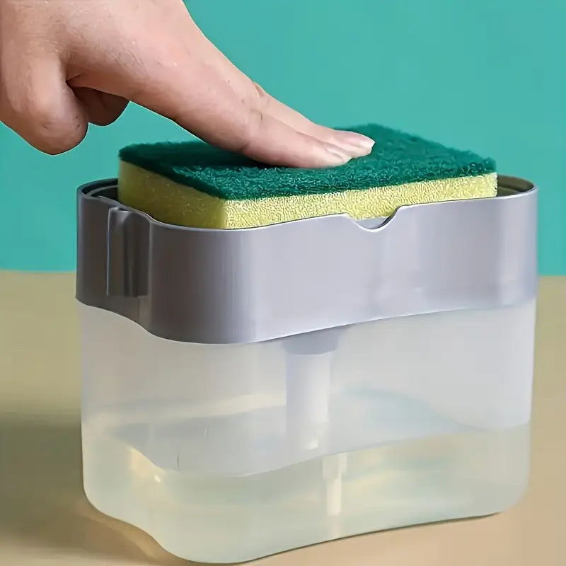 داة عملية للمطبخ تجمع بين موزع الصابون السائل وحامل الإسفنجة في تصميم واحد مدمج. يتميز بآلية ضغط بسيطة تسمح لك بضخ الصابون مباشرة على الإسفنجة بضغطة واحدة فقط، مما يجعله سهل الاستخدام ويوفر الوقت والجهد.